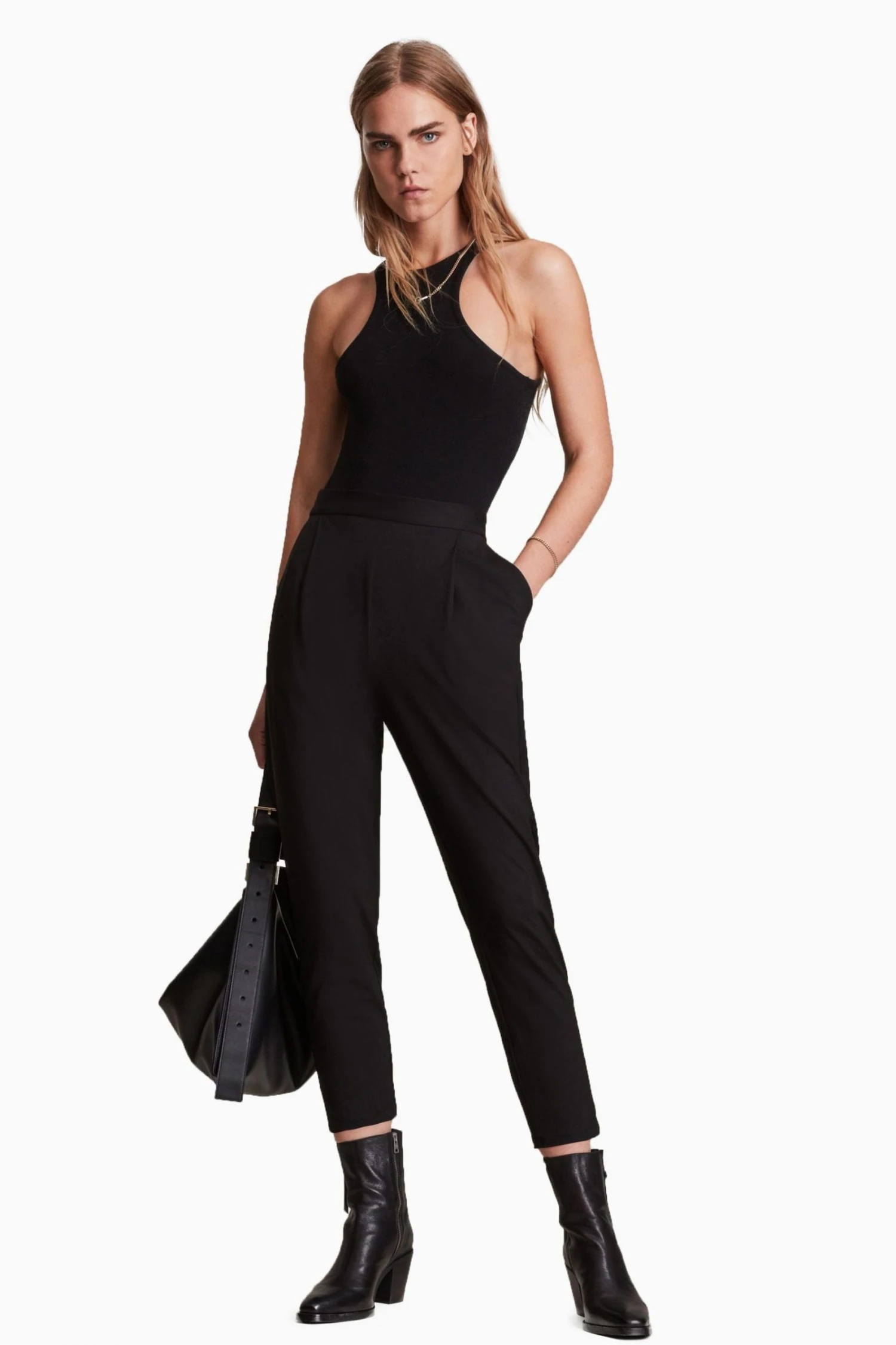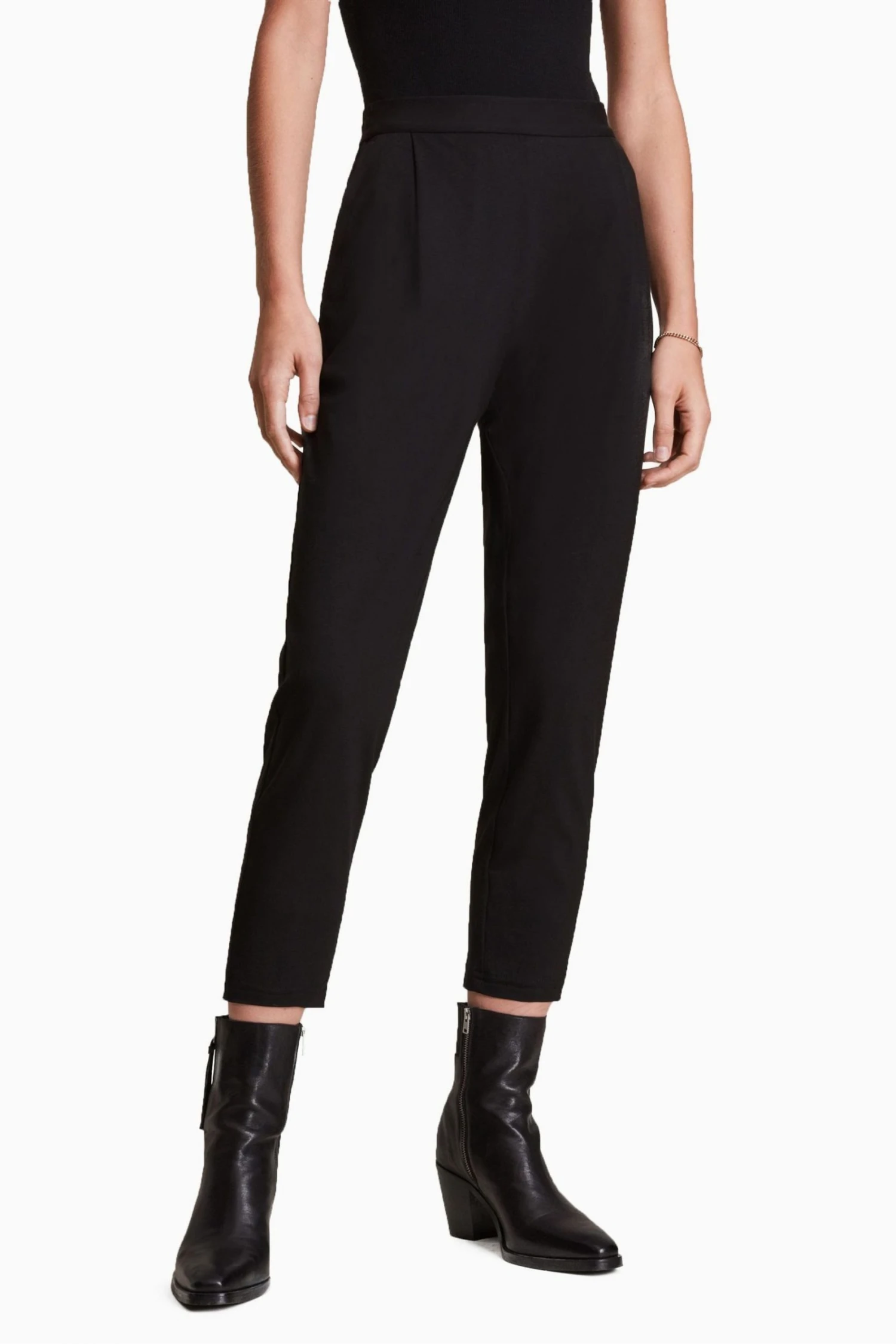 Featuring mid rise, two side pockets, two back pockets, elasticated waist band, fluid fabric and regular fit.