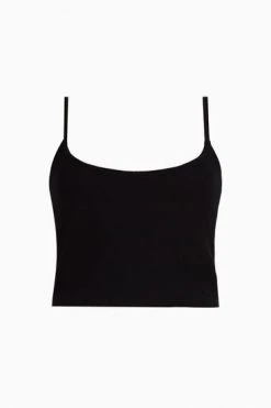 Featurign a pull-over design, bodycon fit, scoop neck and sleeveless design. Crop top with spagetti straps which are adjustable. Embroidered ramskull on the hem, which is tonal to base colour.