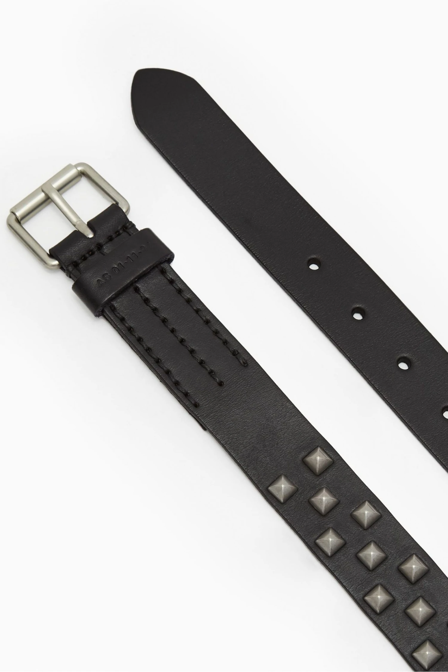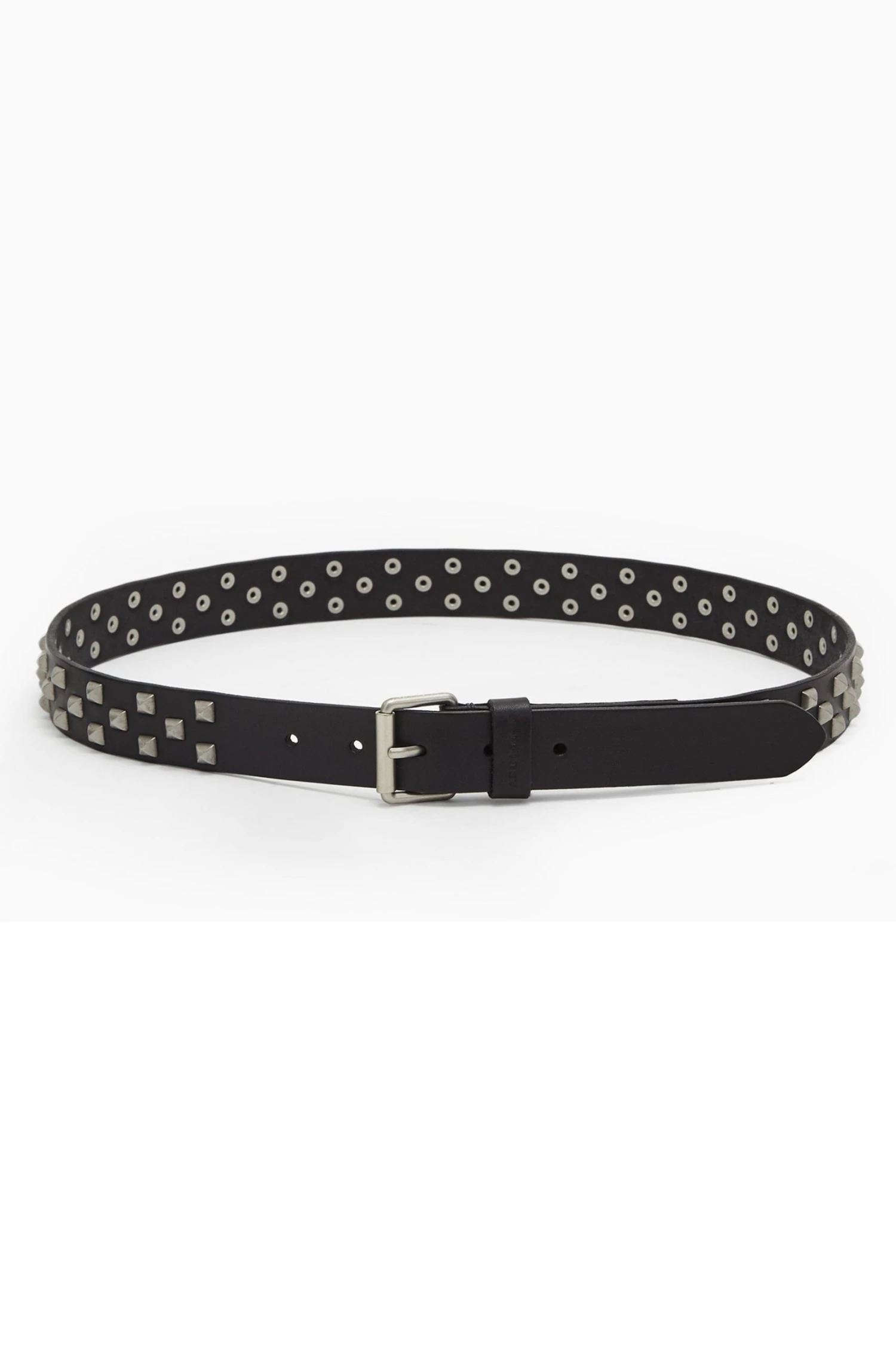 Hip belt. Three rows of pyramid studs. Roller buckle. Fully adjustable. Embossed ramskull on the keeper.