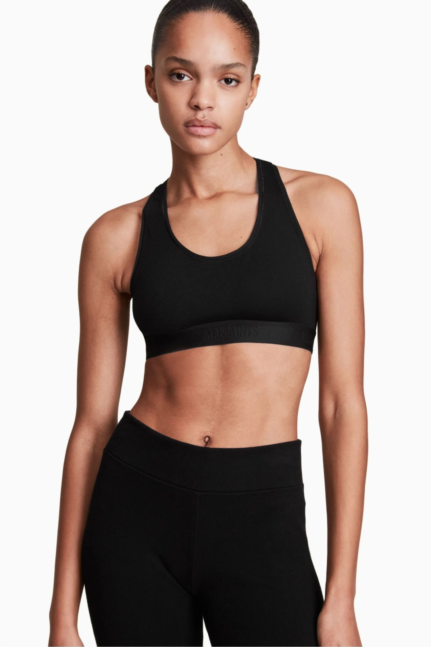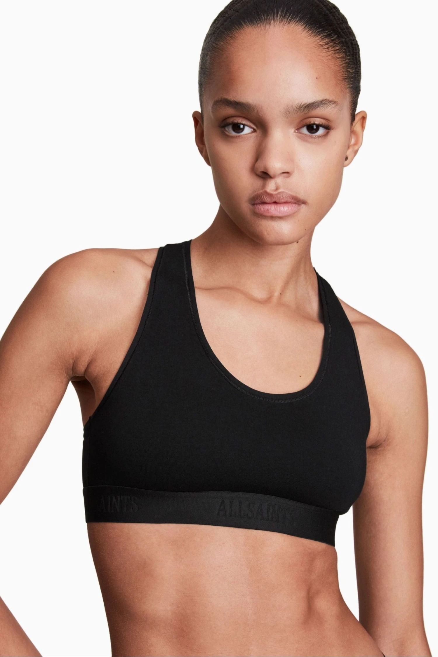 Bralet. Scoop neck. Racer back. Lined with self fabric. AllSaints branded elastic. ALLSAINTS cotton products support more sustainable cotton farming. Better Cotton is sourced via a system of Mass Balance.