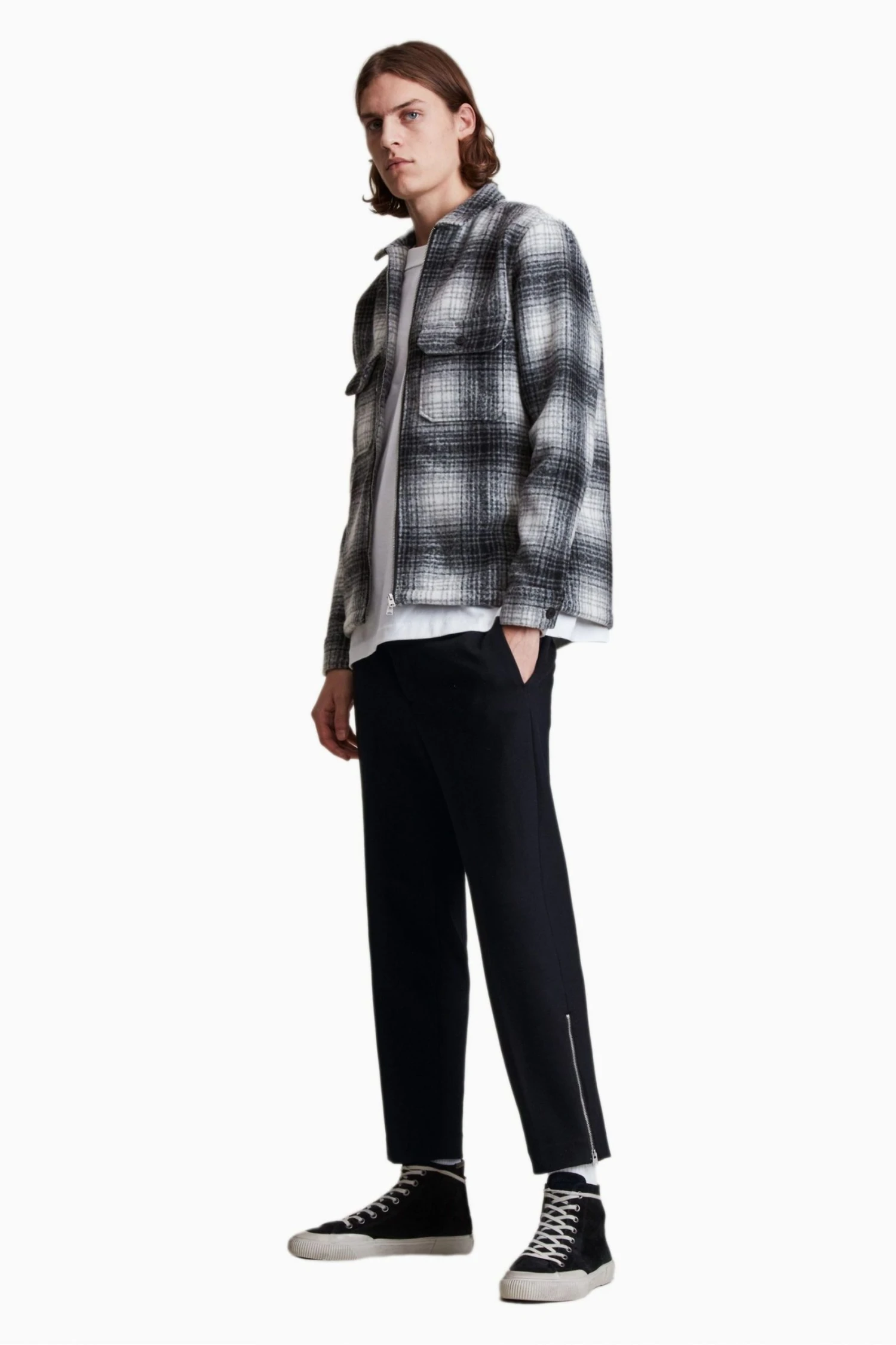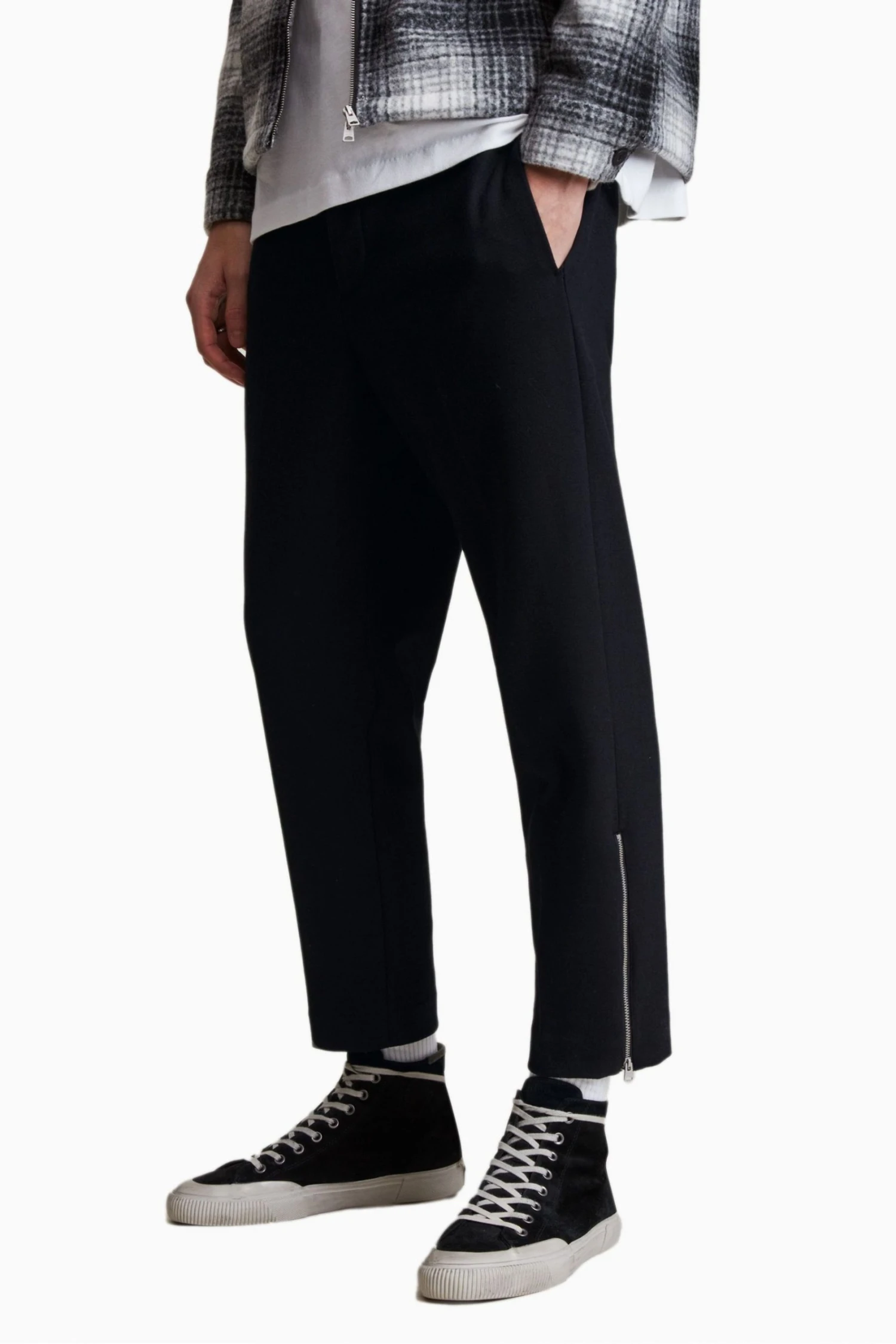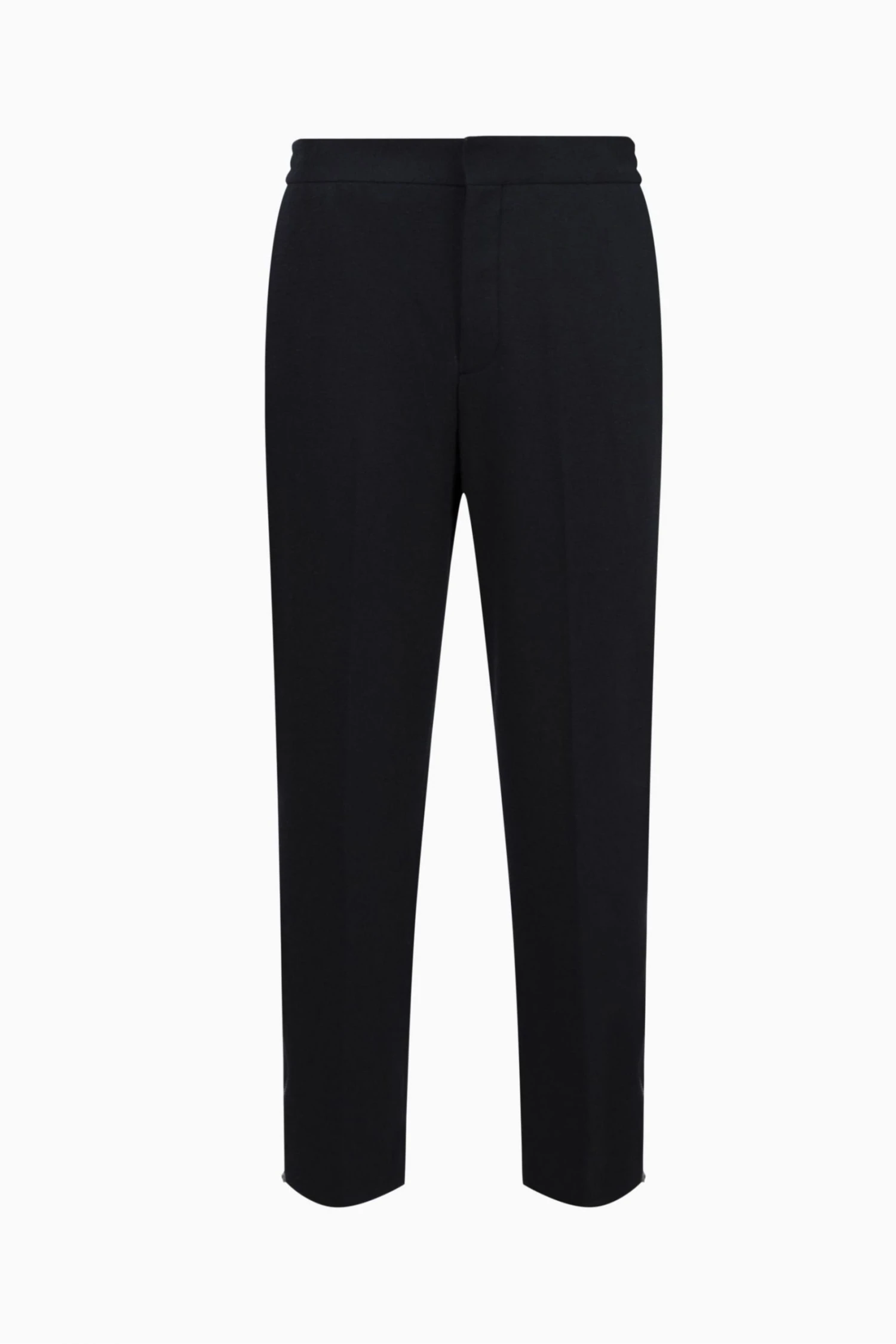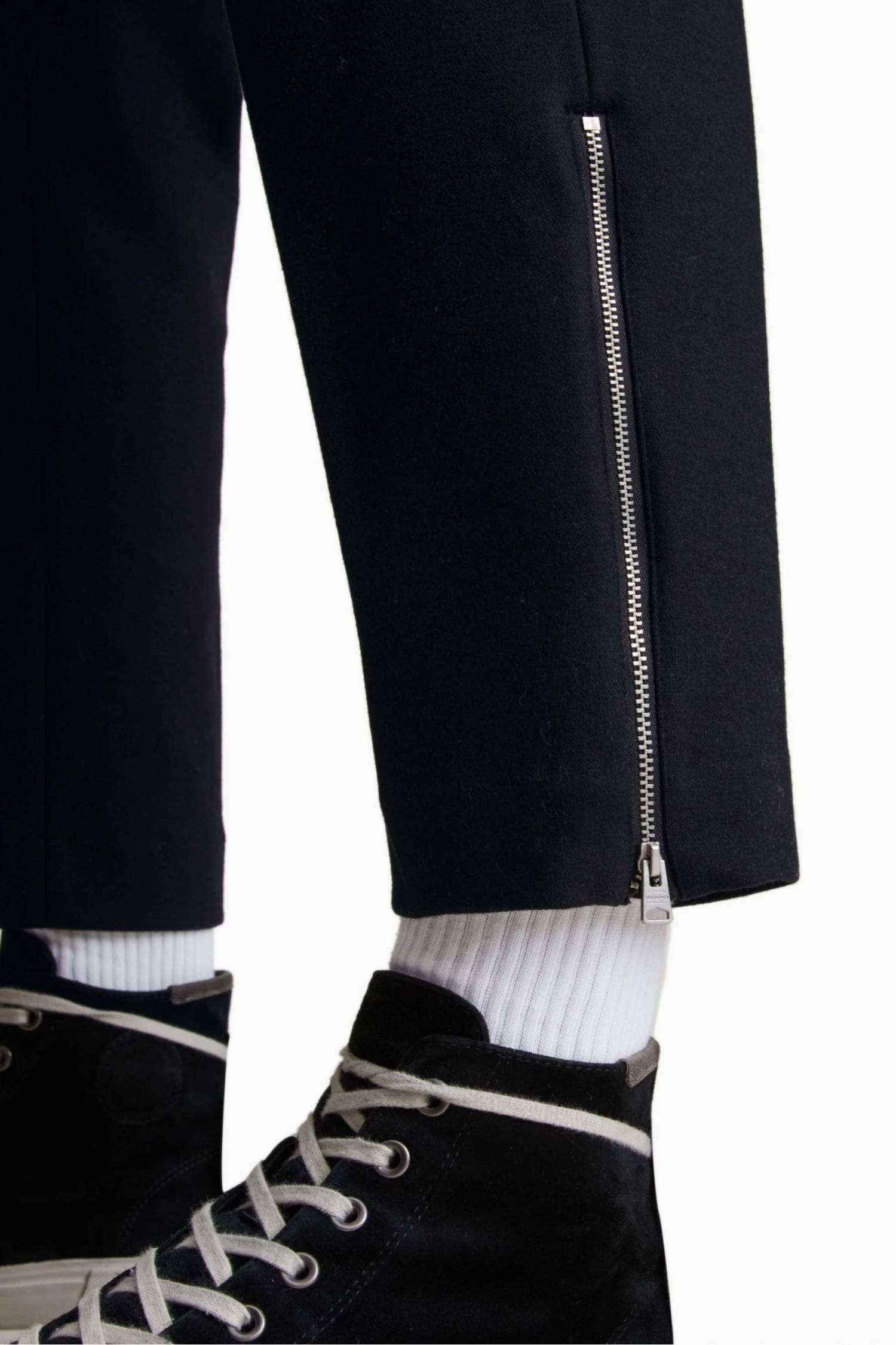 Featuring slim fit, cropped, back of waistband is elasticated, front of waistband is fixed, zip detail on hem, back pocket welts and in-seam side pockets.