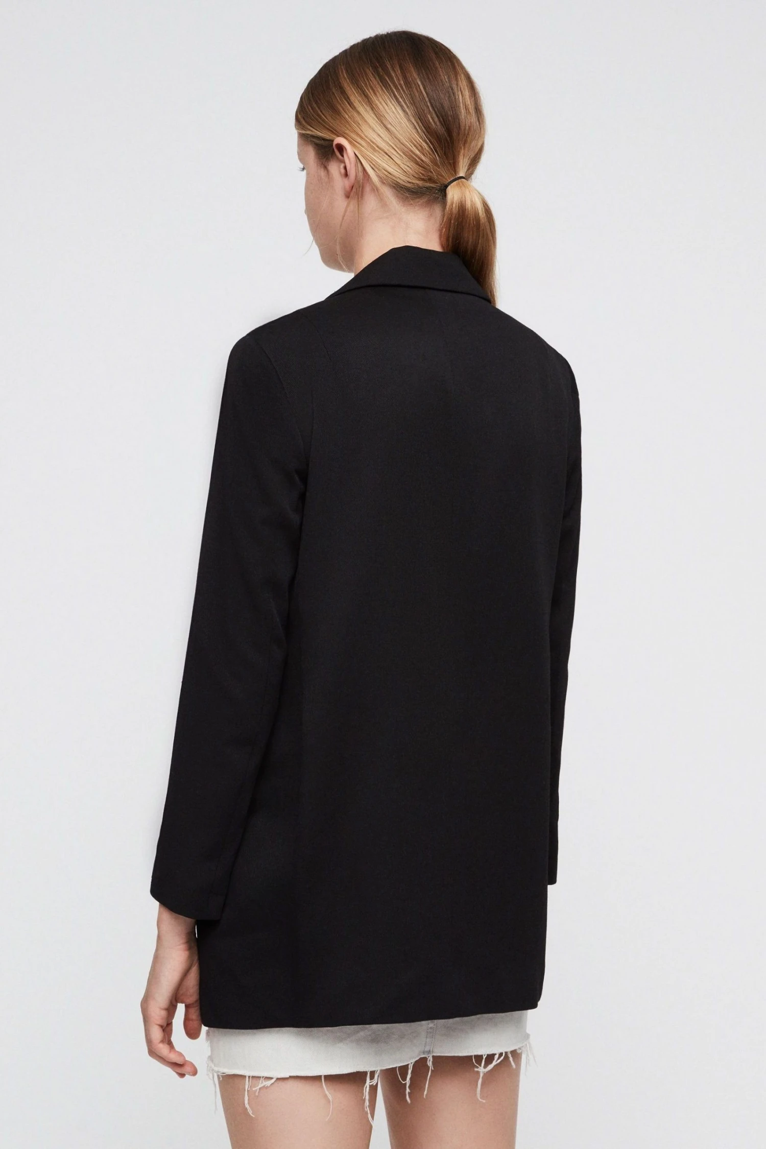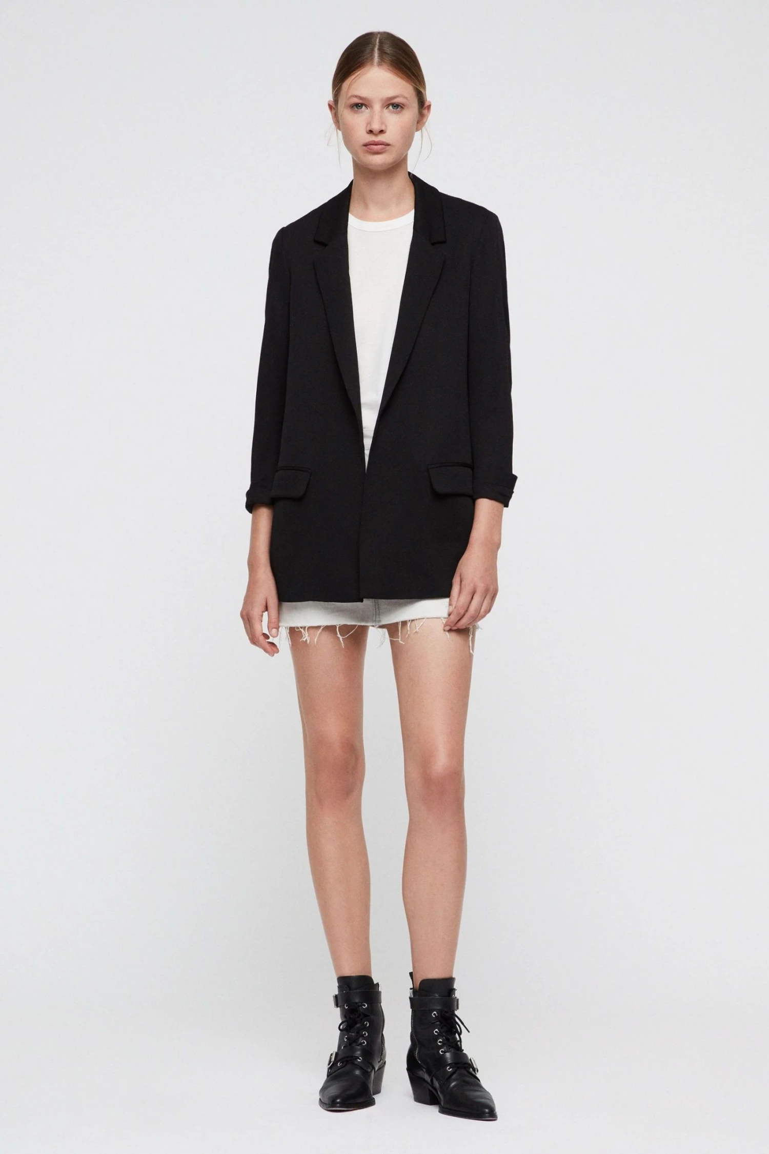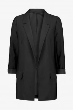 Long sleeve. Notch lapels. Two flap pockets. Open front. Fully lined. Pair with the Aleida Trousers. Recycled fabrics
