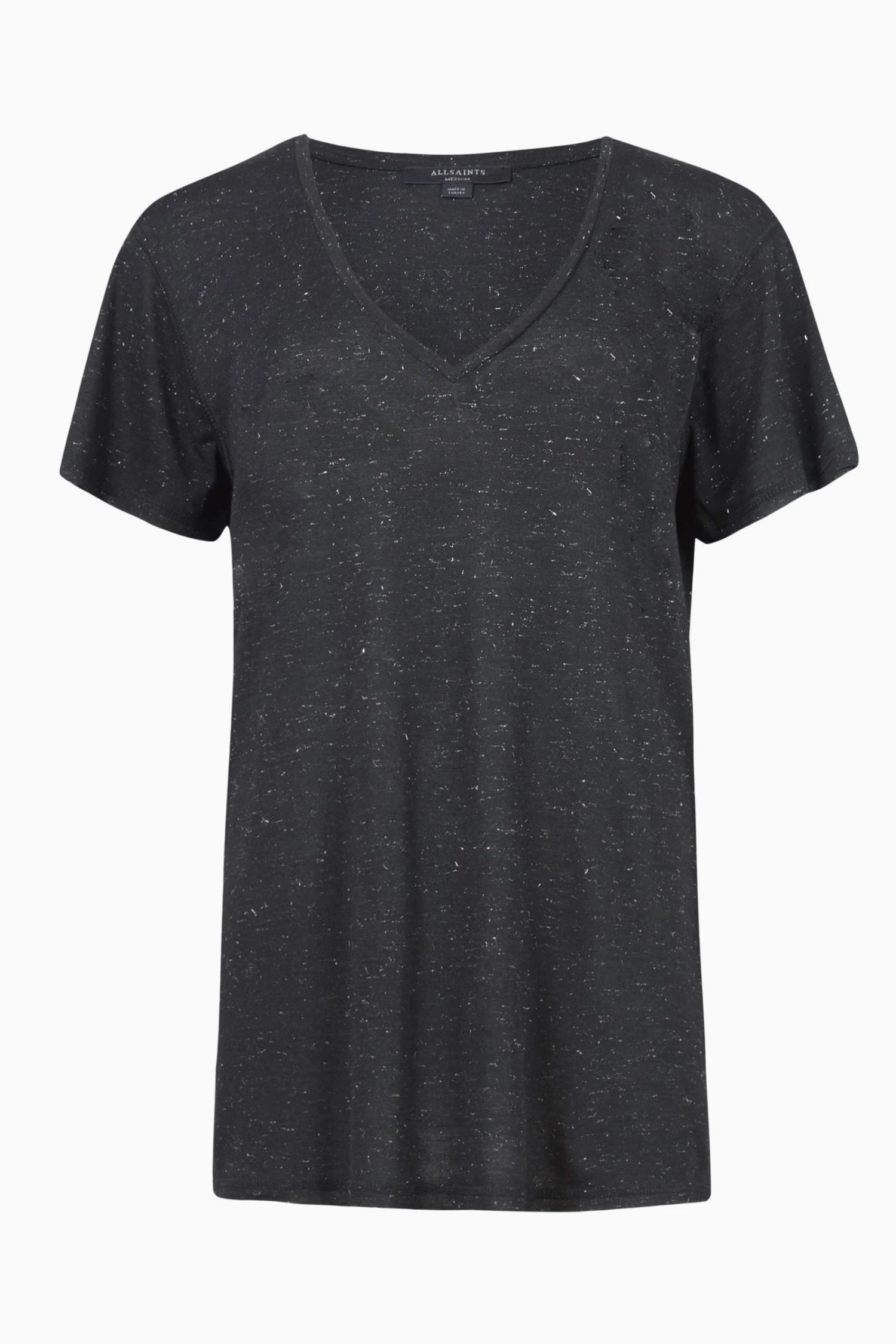 Featuring pull over, regular fit, short length, V-neck, short sleeve and shimmer fabrication.