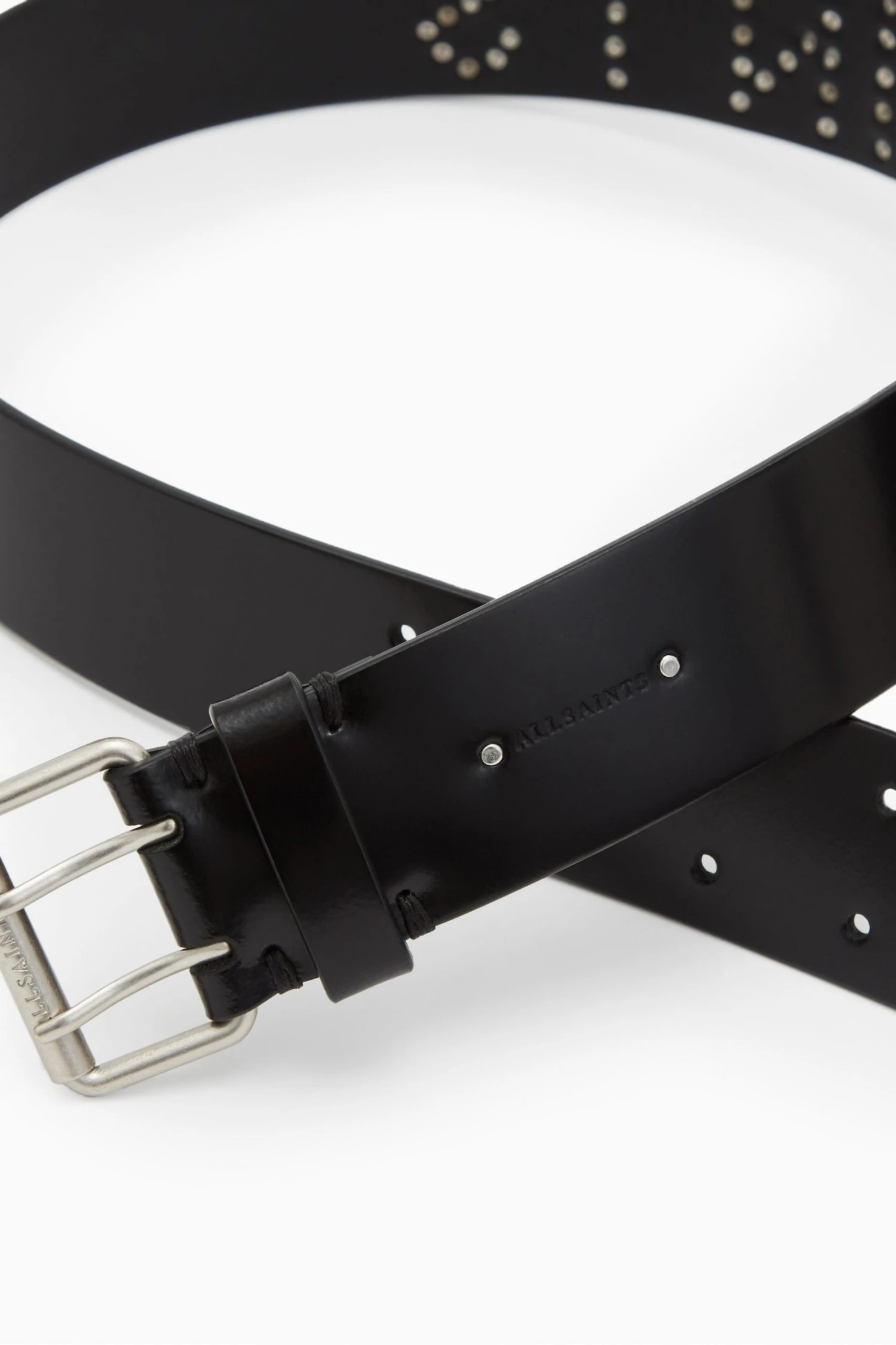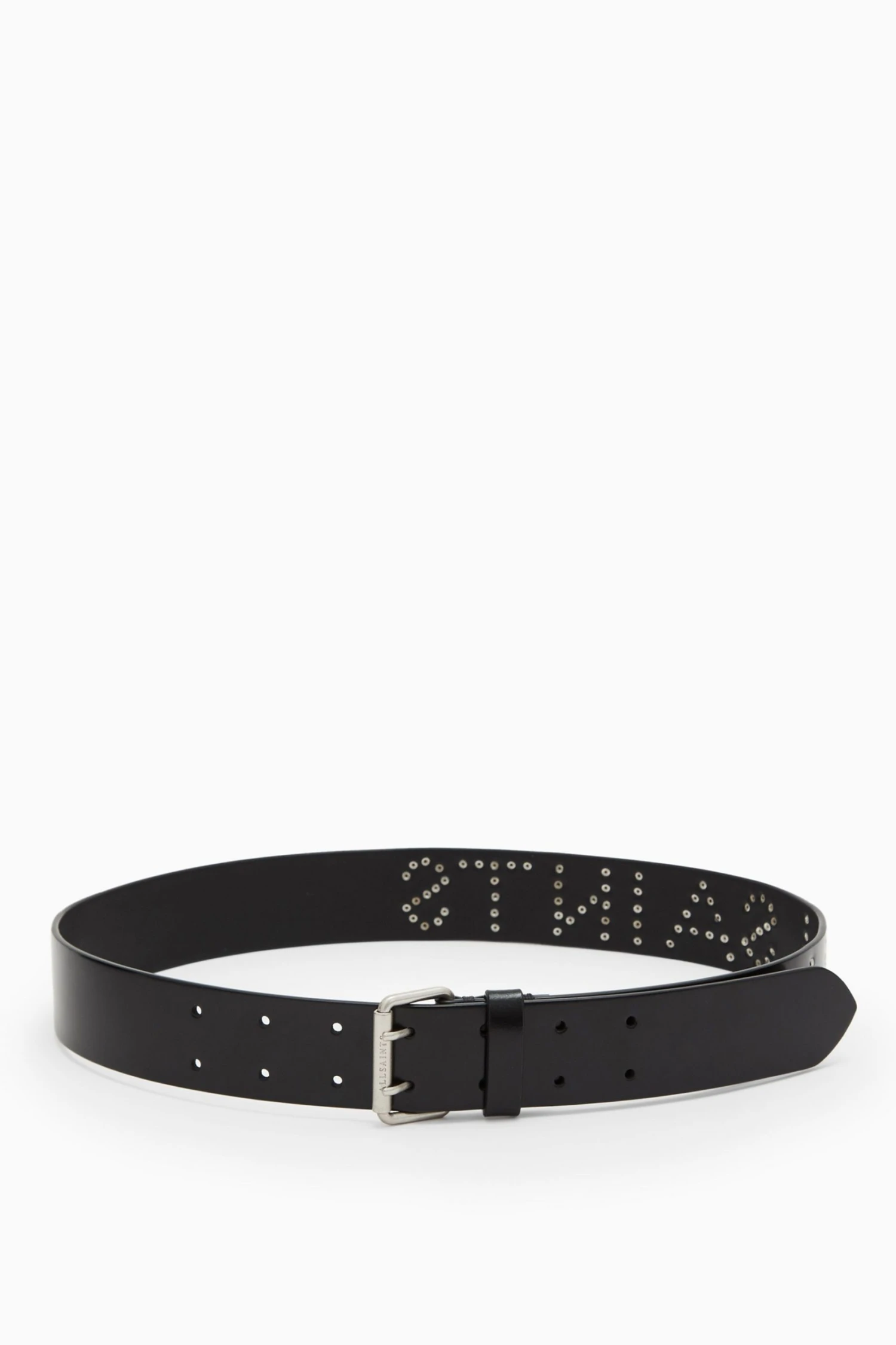 With buckle. Spazzolato leather hip belt with warm brass eyelet detailing. Buckle-Zinc Alloy. Trims-Brass. Blind emboss logo with stud detail at backtab. XS: 88.9, S:96.52, M: 104.14, L: 111.76, XL: 119.38 (mm). Width: 38mm.
