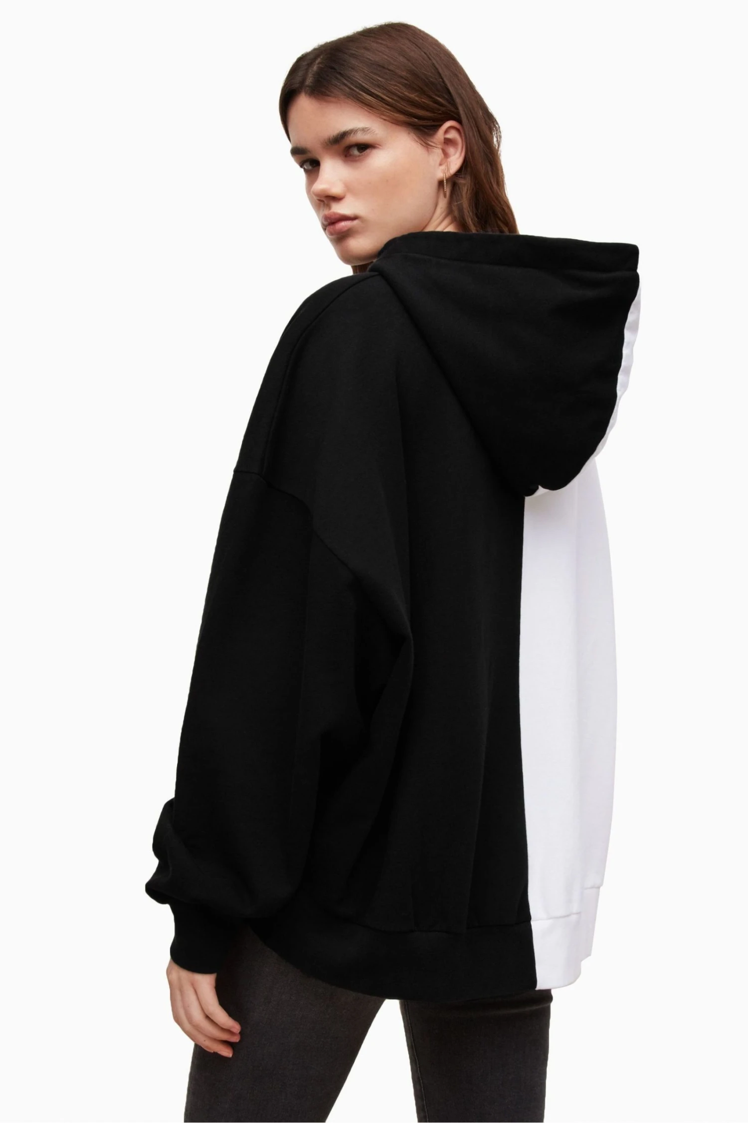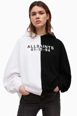Relaxed fit. Long sleeve. Pull over. No Pockets. Hood. Monochromatic colour blocking. AllSaints signature logo. ALLSAINTS cotton products support more sustainable cotton farming. Better Cotton is sourced via a system of Mass Balance.