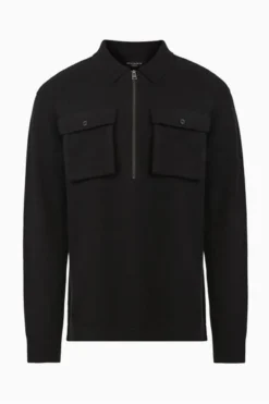 Featuring bellowed patch pockets on chest, Allsaints branded imitation horn buttons on pockets, AllSaints branded zipper, lightly overwashed yarn giving structure to the knit ribbed trims and external seam detail.