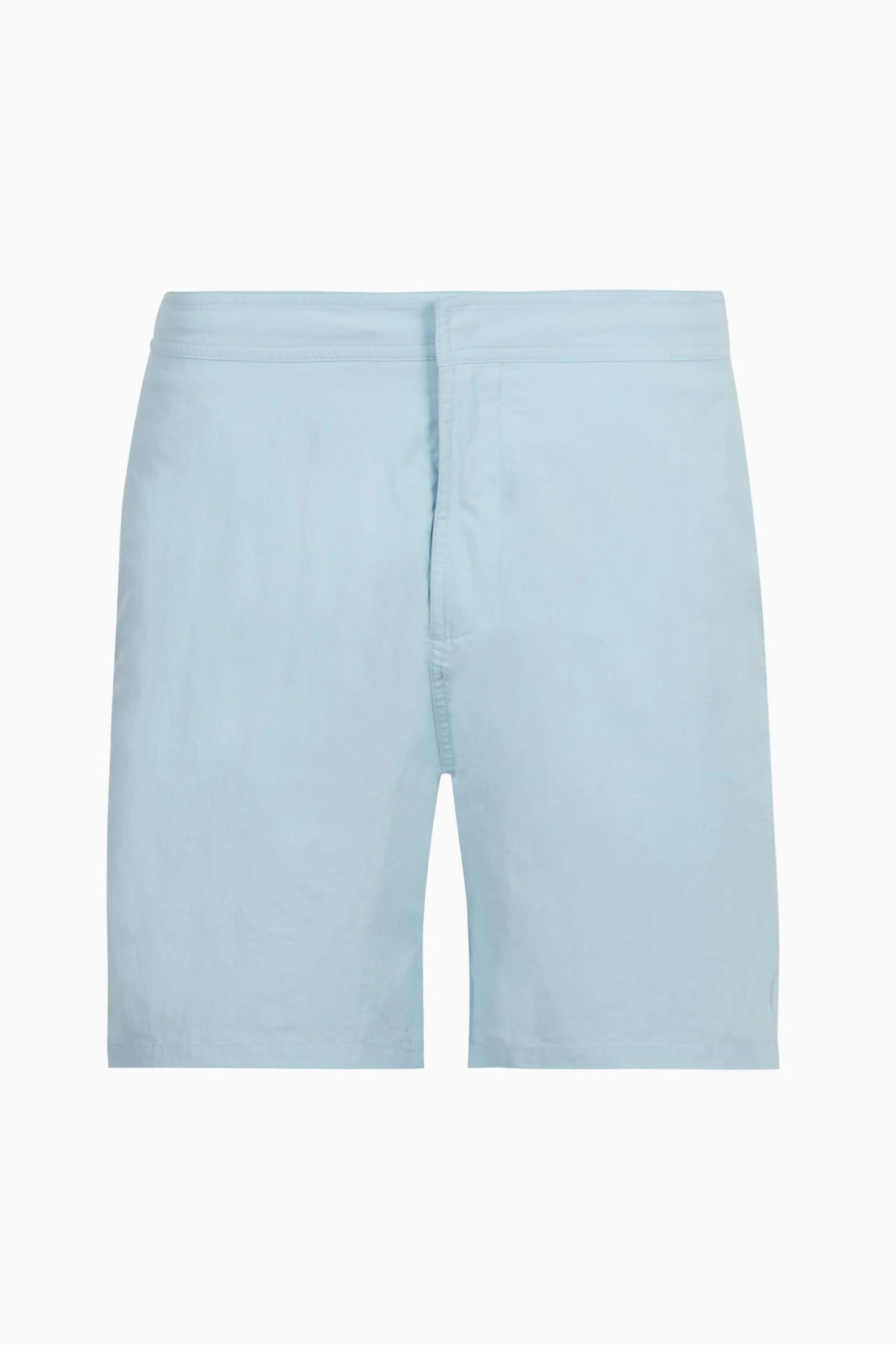 These shorts are swimwear, featuring two pockets, tie on the inside of the waist, popper closure and Ramskull embroidery.
