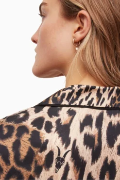 Pyjama set. Elasticated waistband. Button up shirt. Left chest pocket. Short sleeve. Contrast piping. Classic animal print. Boxer shape shorts. AllSaints signature label on waistband. Sustainable EcoVeroâ„¢ viscose. Relaxed fit.