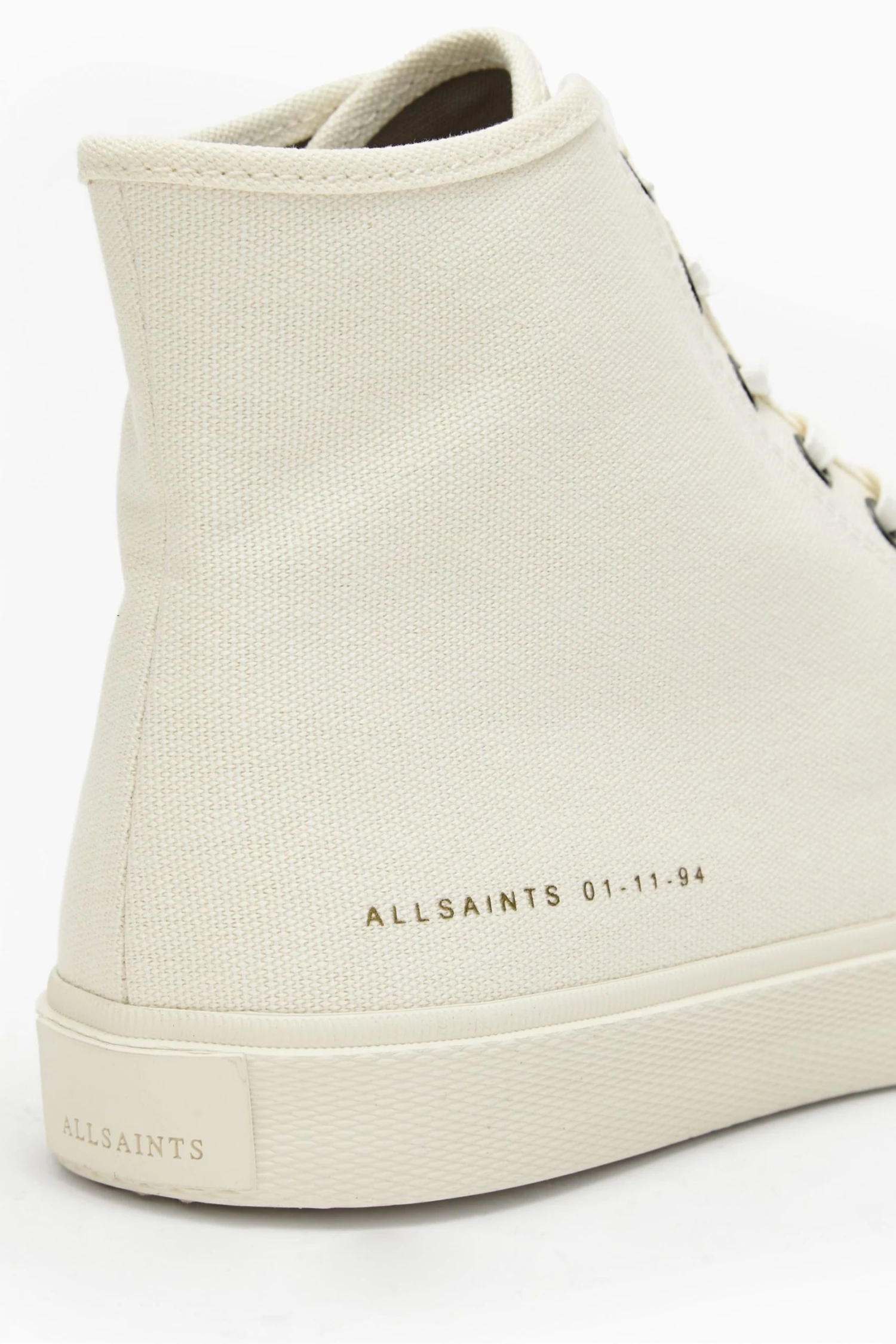 Round toe High top trainer. AllSaints 01-11-94 branding. Lace up. Vulcanised rubber sole.