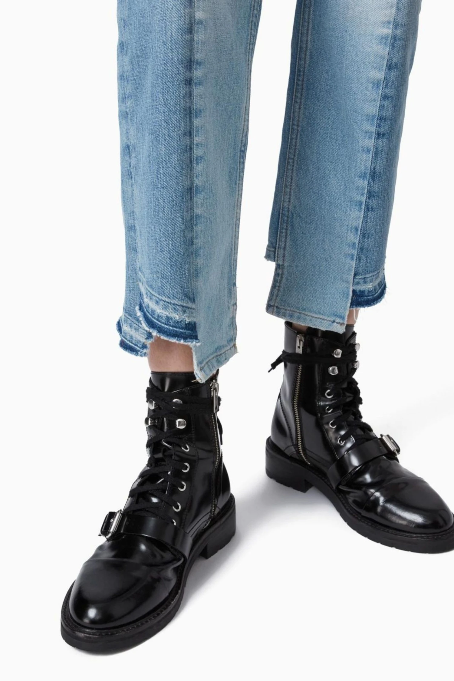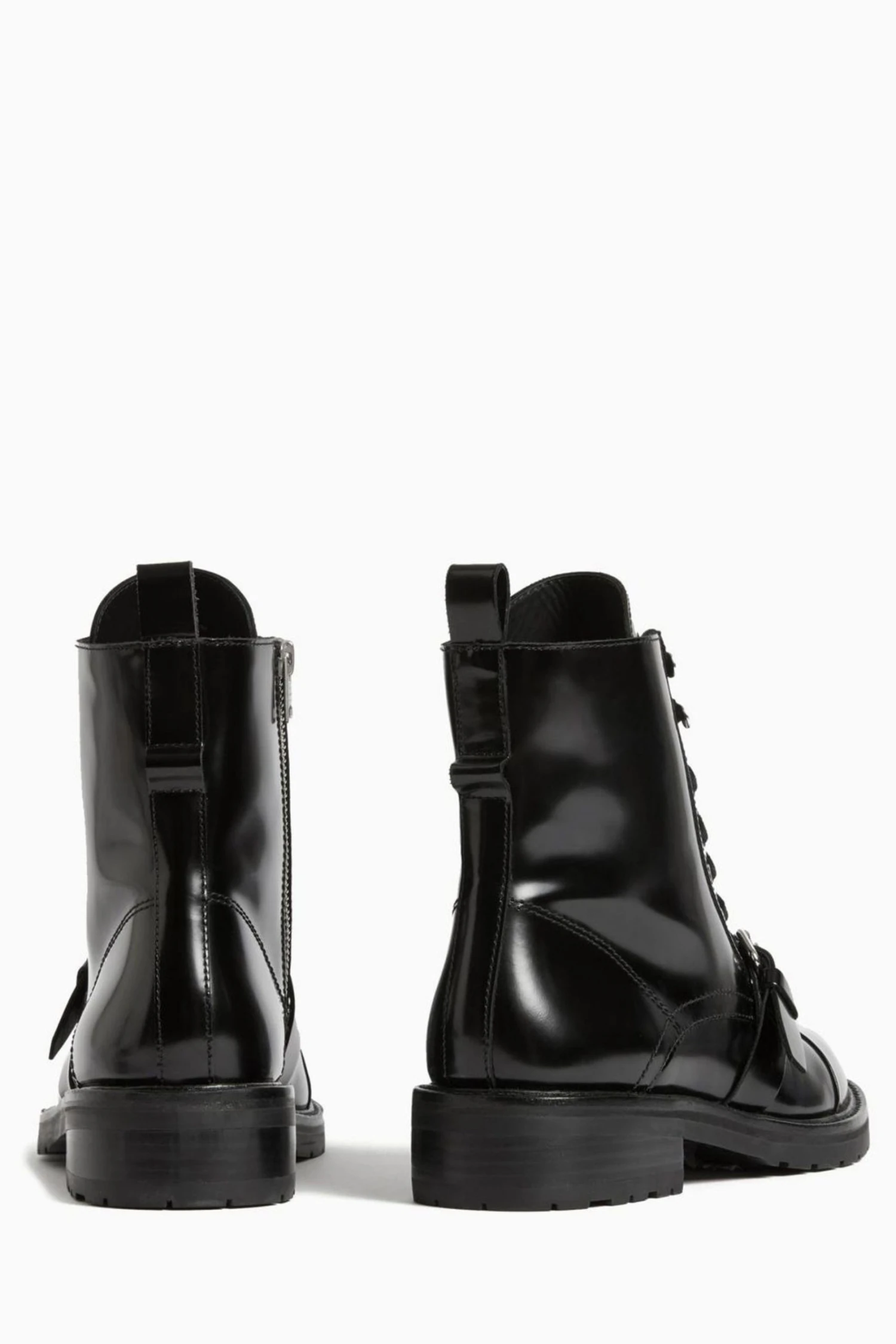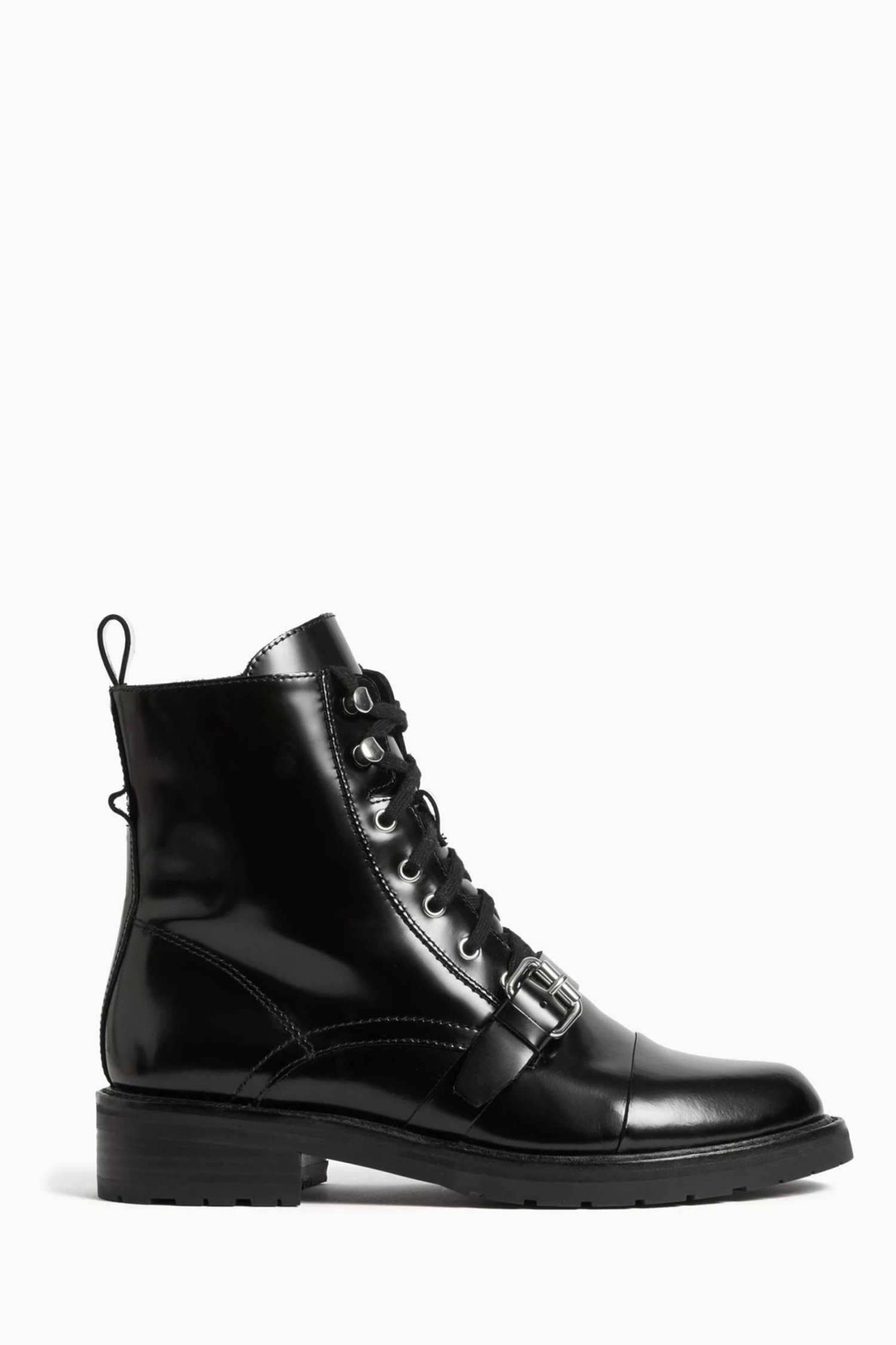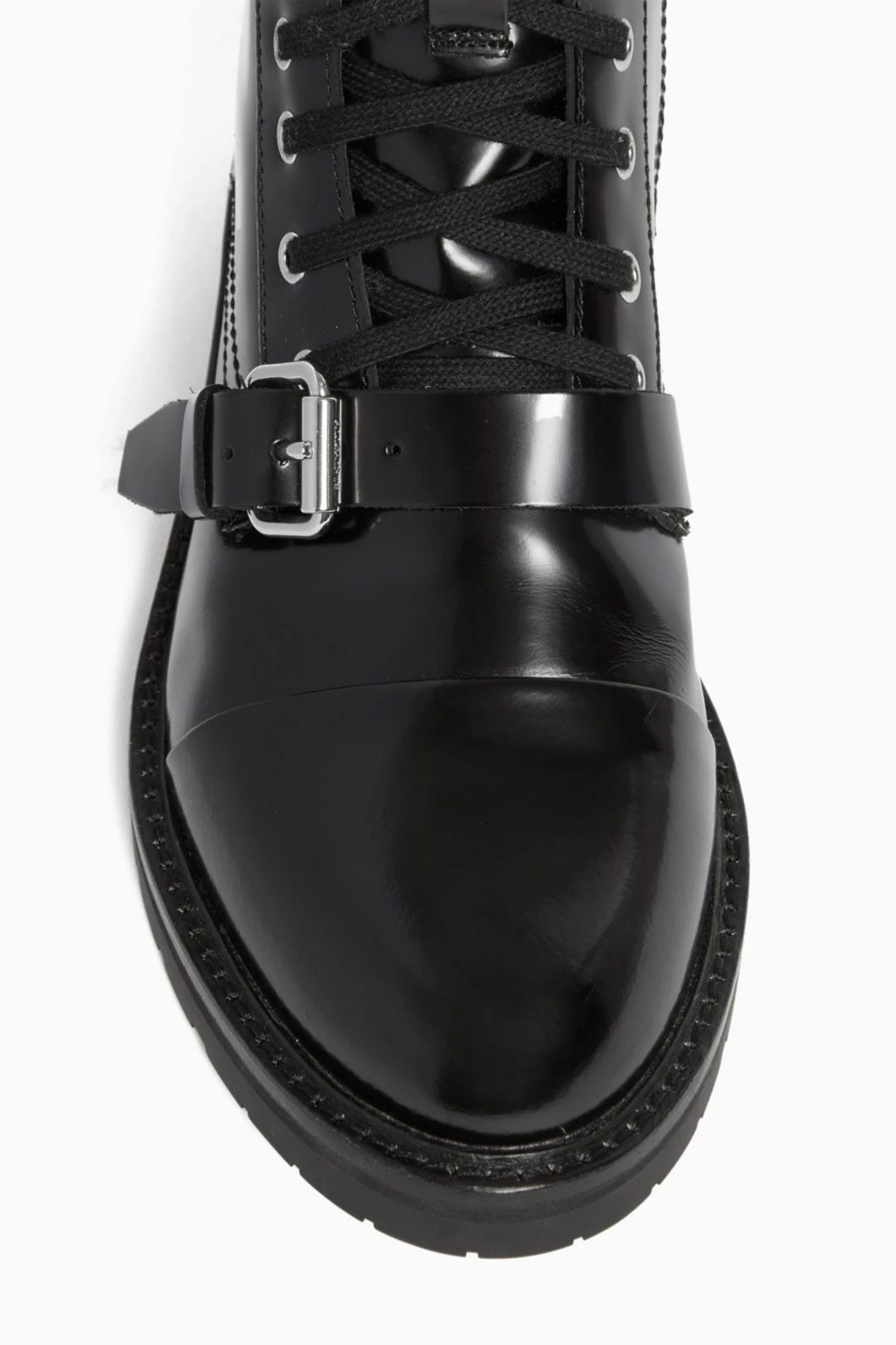 Featuring round toe, metal eyelets, rubber tread, wrap-around laces, strap across the toe and leather pull tab. Heel height: 3.8cm.