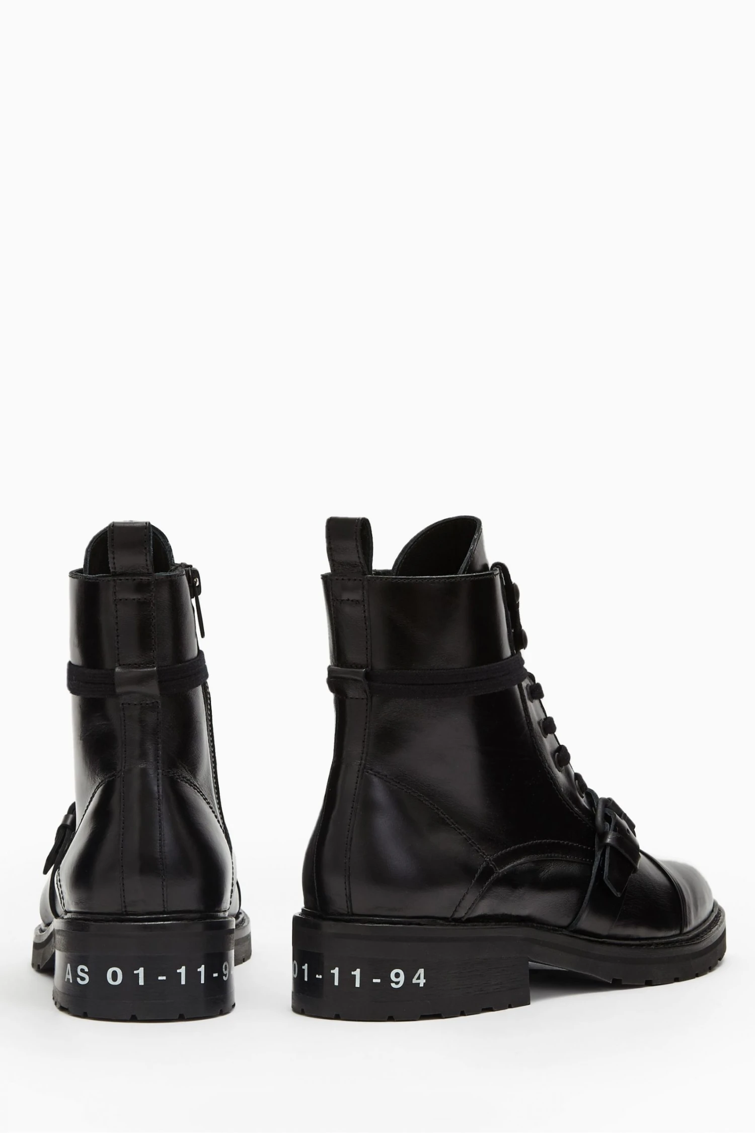 Featuring round toe, metal eyelets, rubber tread, wrap-around laces, strap across the toe and leather pull tab.