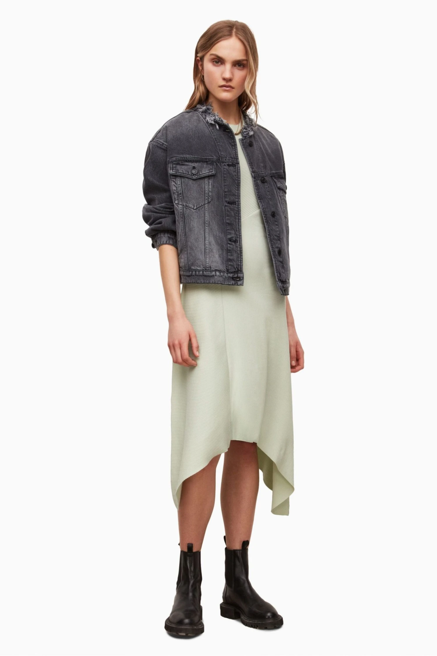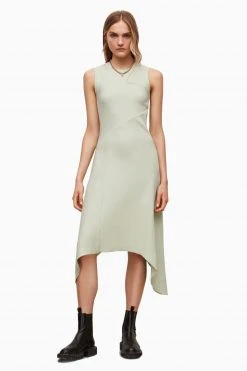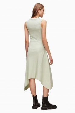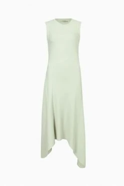 Featuring pull over, crew neck and sleeveless. The Gia dress is made from a ribbed jersey fabrication, and is panelled together with interesting seam lines creating an asymmetric hem and no pockets.