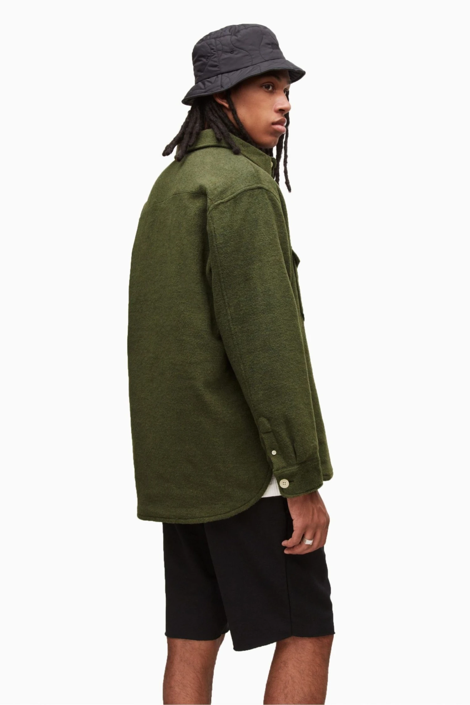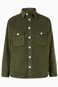 The jacket offers a relaxed fit with a collar and long sleeves.