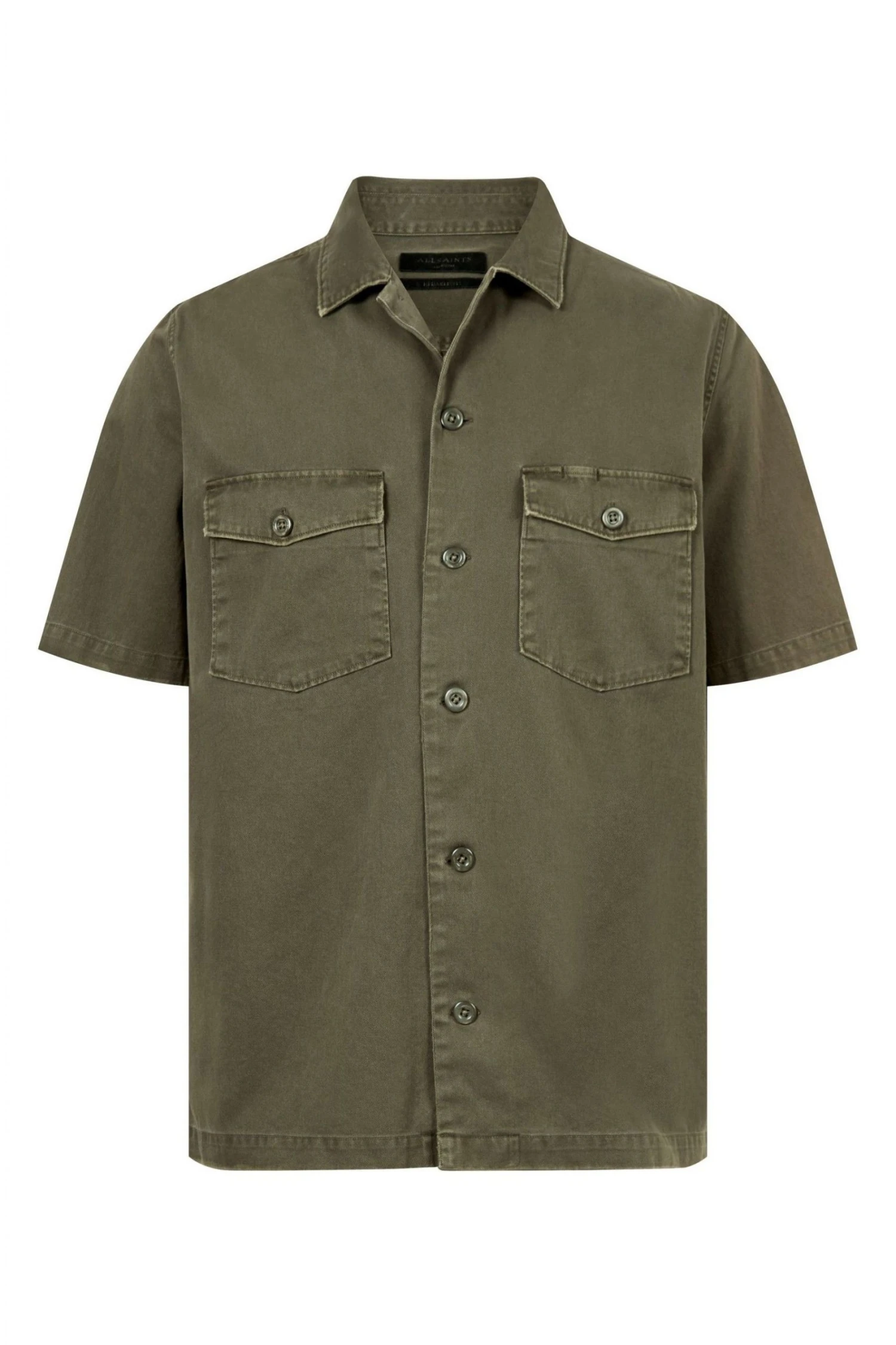 Old-school military. The Spotter, inspired by classic army overshirts. Heavily-laundered cotton, with large buttons and patches of distressing. You can just chuck it on. Short sleeve. Button up closure. Camp collar. Chest pockets. Model is 6’1″/185cm and is wearing size Medium.