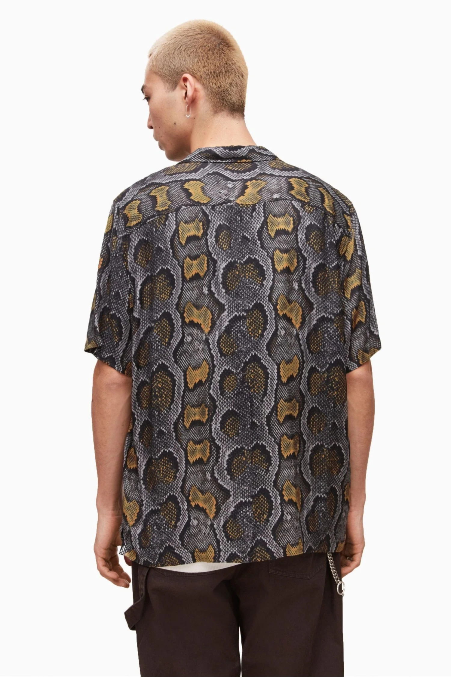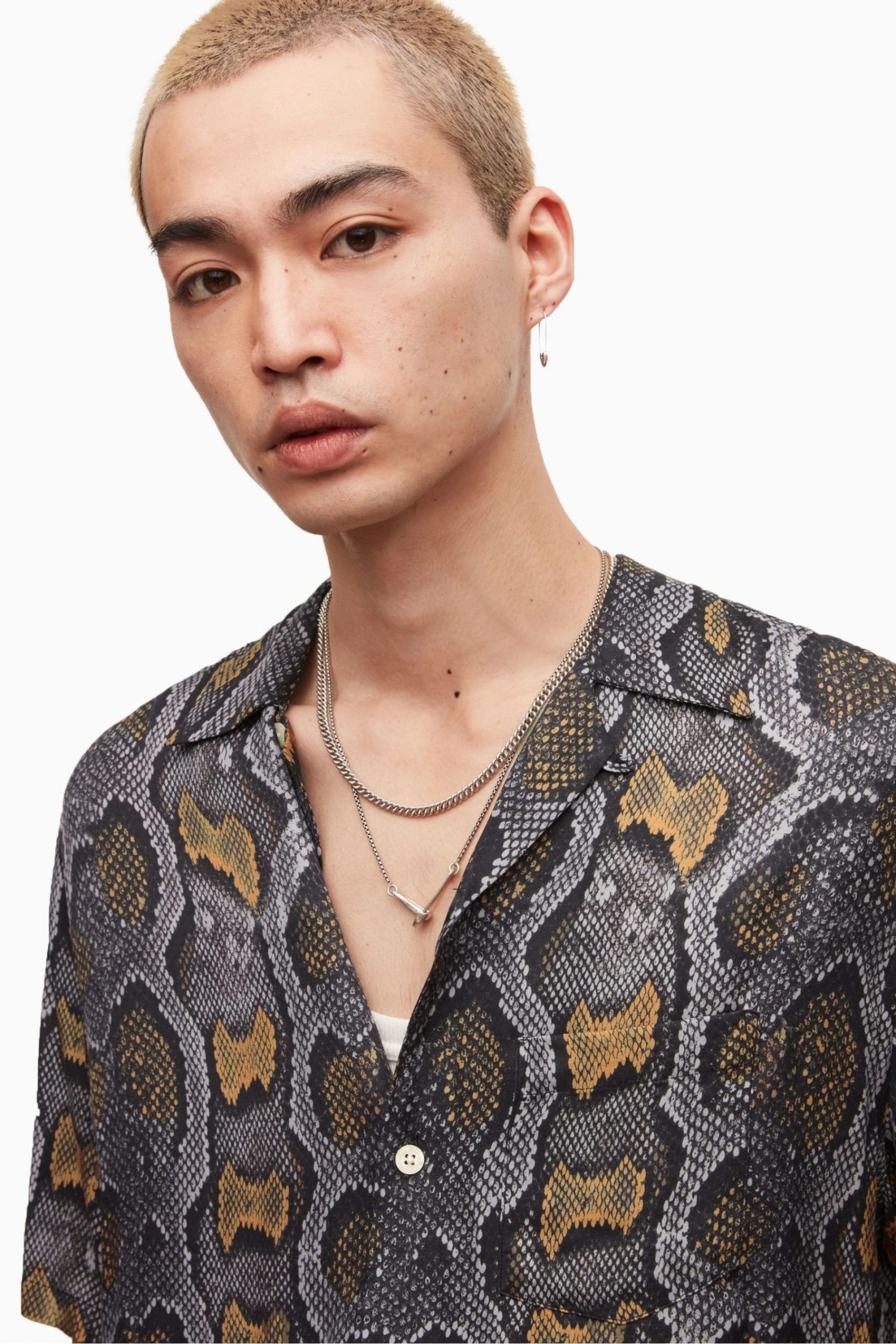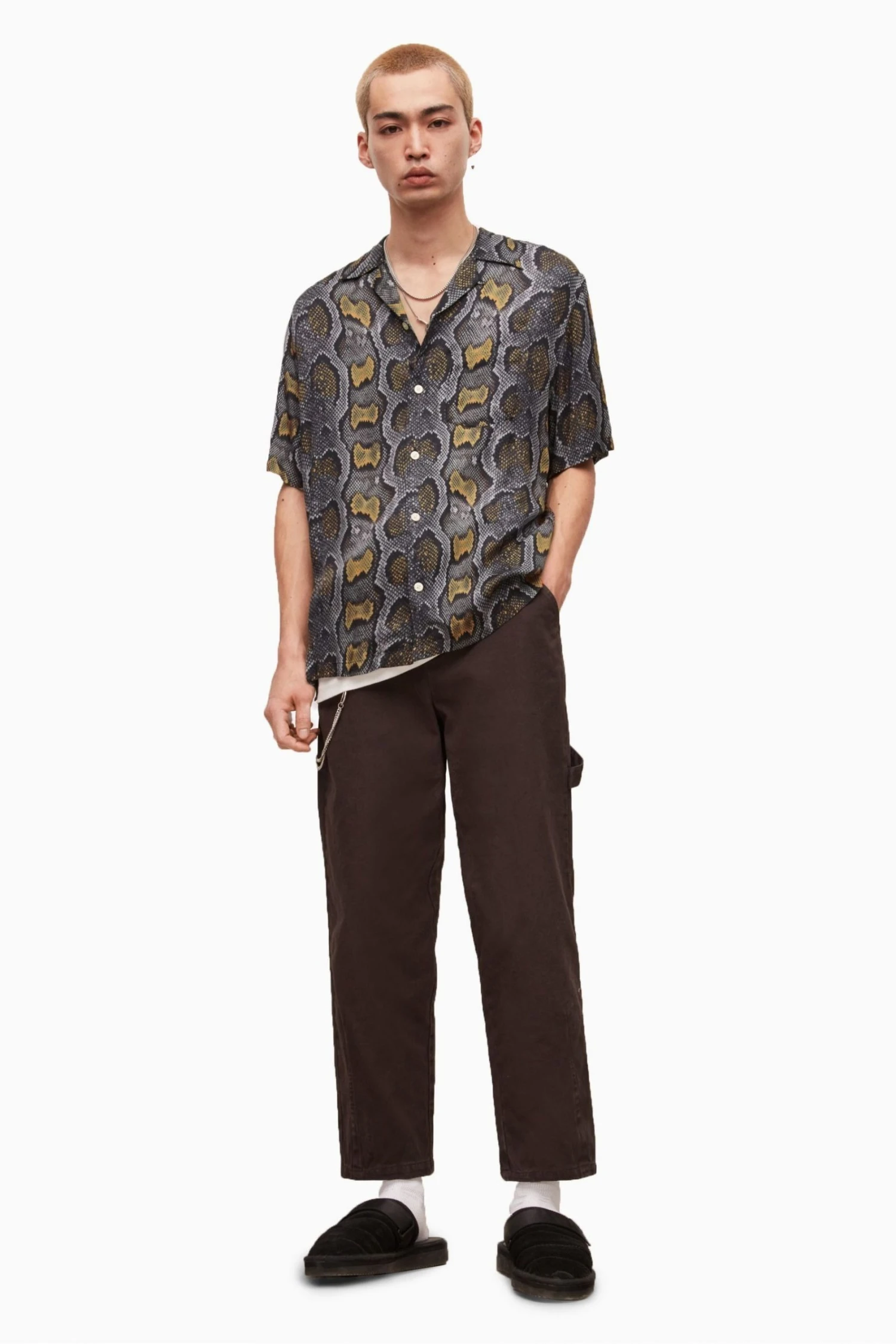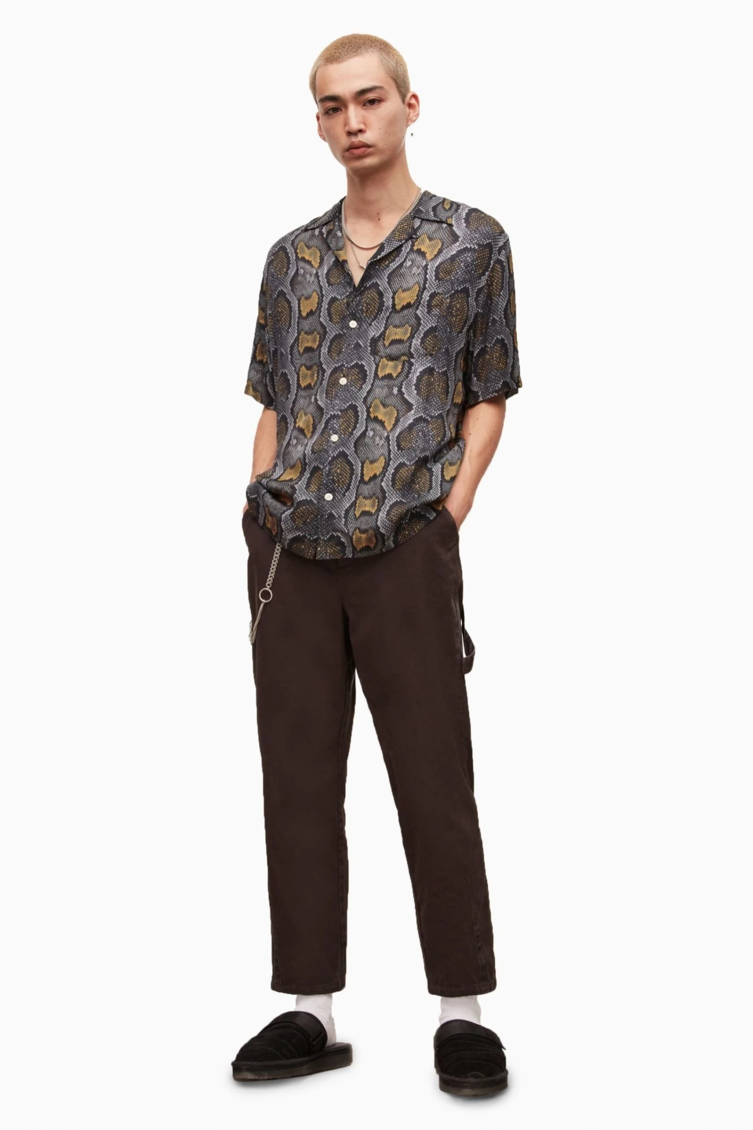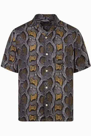Stand out in snake print. The Copperhead Shirt is cut to our classic short sleeve, camp collar silhouette. Relaxed fitting and completed with a chest pocket, of course. Camp collar. Button closure. Single left chest pocket. Short sleeve. Snakeskin printed motif. Rinse washed. Sustainable EcoVeroâ„¢ viscose. Model is 6’1″/185cm and wearing size Medium
