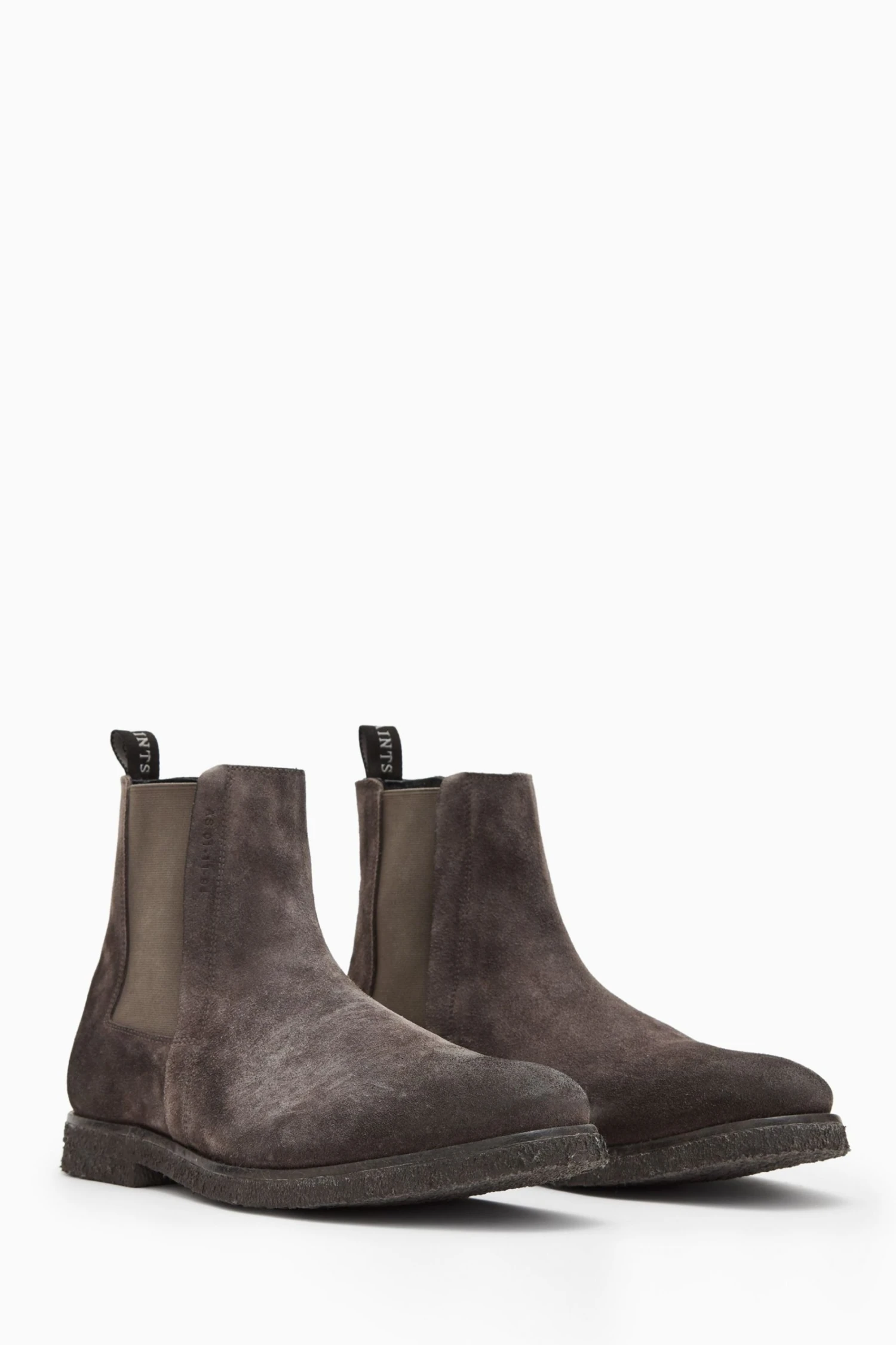 For casual occasions, step out in the Rhett Boots. Crafted from soft suede and finished with a natural crepe rubber outsole. Shaped to a traditional chelsea boot silhouette. Round toe. Ankle boot. Pull tab. Chelsea boots. Elasticated gusset.
