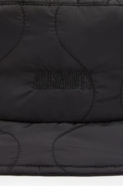 Sweatband. Quilted. AllSaints embroidery. Lined. Head circumference: 59cm. Crown height: 9cm, brim width: 6cm.
