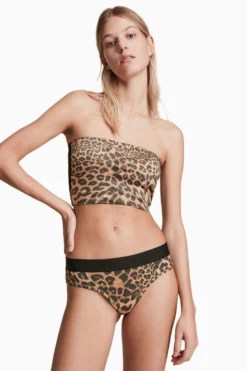 This Bandeau Bra is Off the shoulder and sleeveless. Lace back. New season Kiku animal print. Lined with self fabric. AllSaints branded elastic. ALLSAINTS cotton products support more sustainable cotton farming. Better Cotton is sourced via a system of Mass Balance.