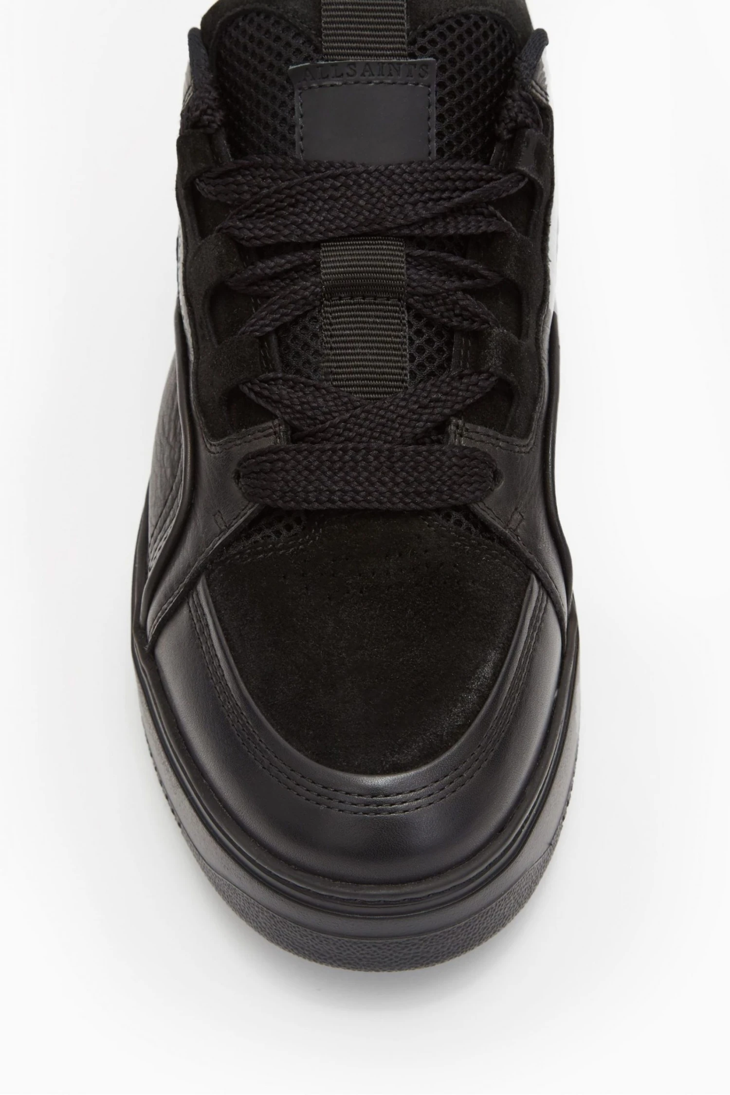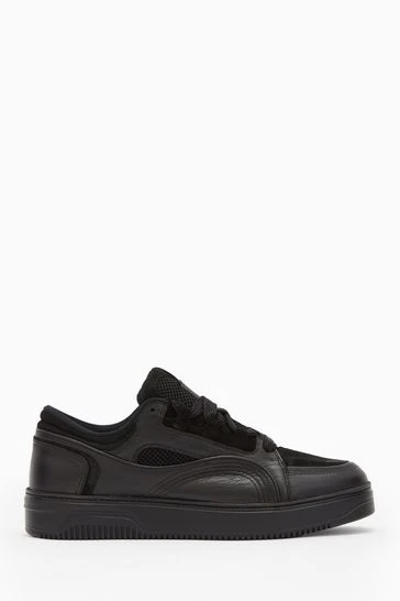 Lace up. Round toe with cup sole skate shoe with ghilli lace detail, wide laces and heat stamp.