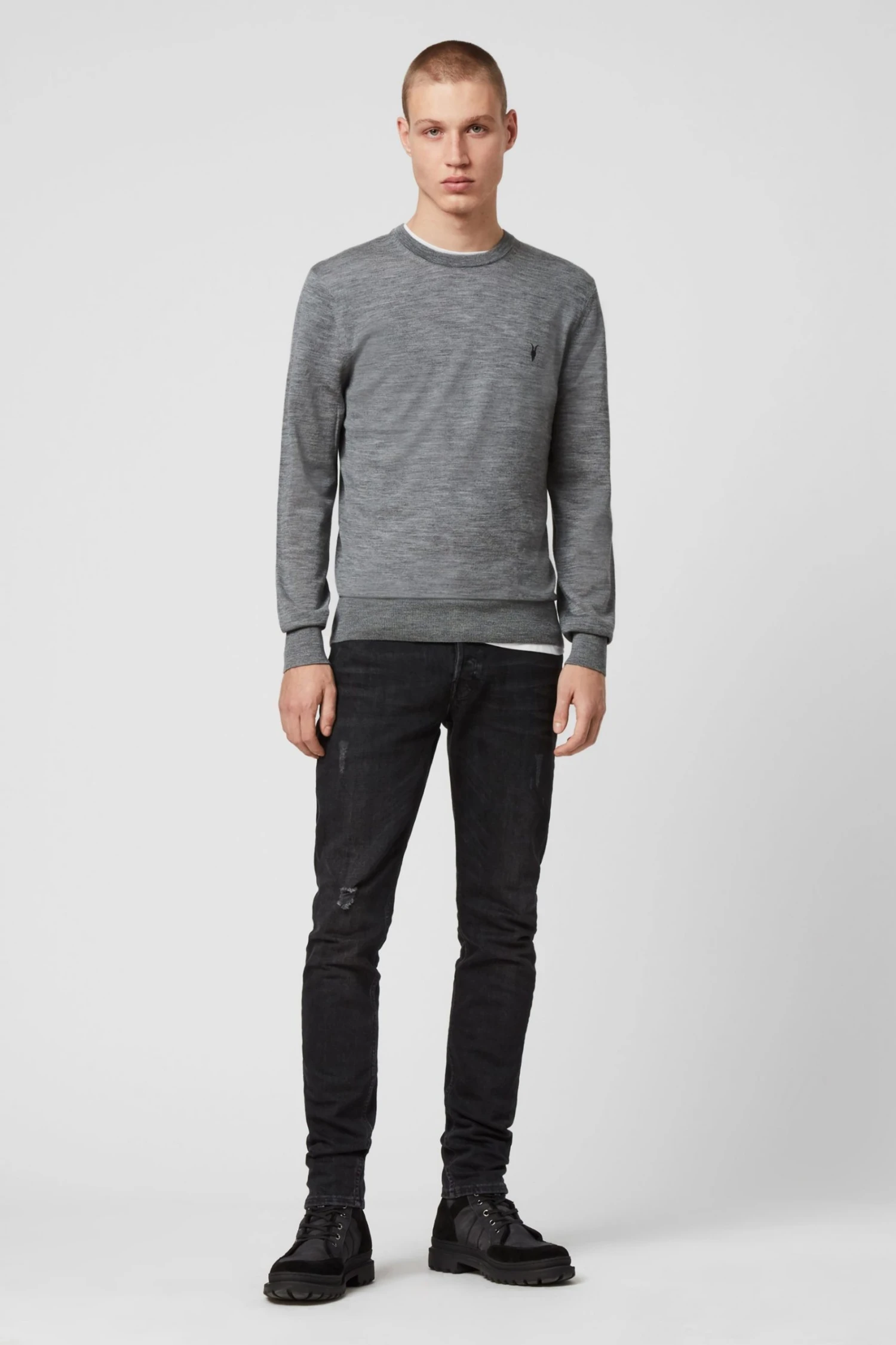 The Mode Crew Jumper is crafted from pure Merino wool for a luxurious supersoft touch and shaped to a classic pullover silhouette. Our signature Ramskull is embroidered at the chest.