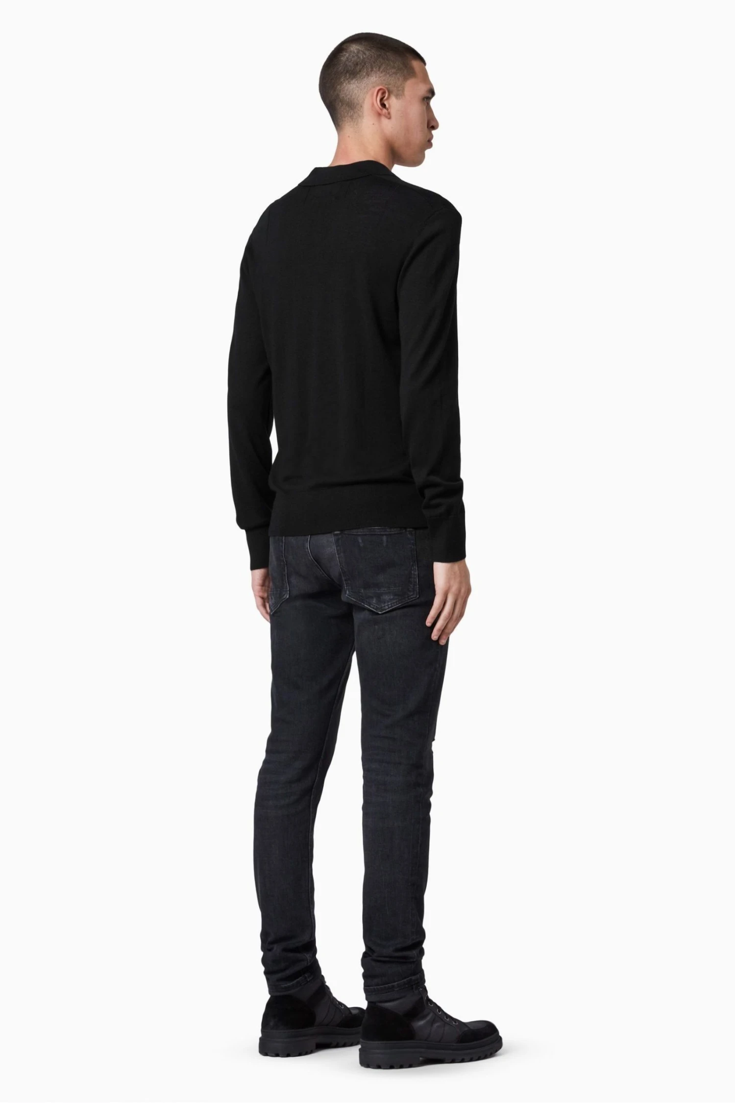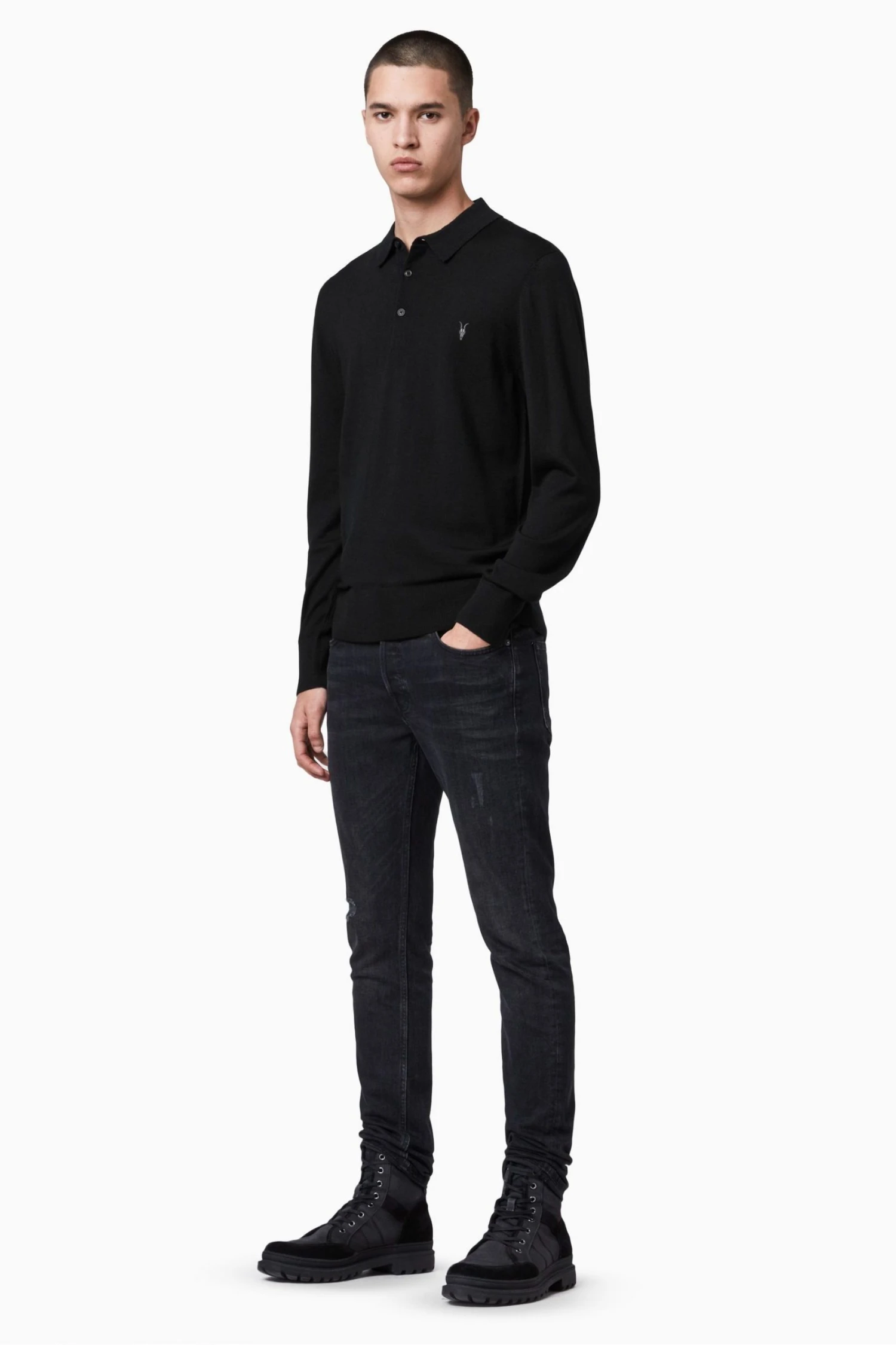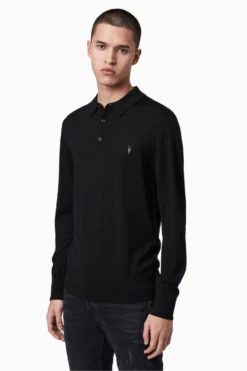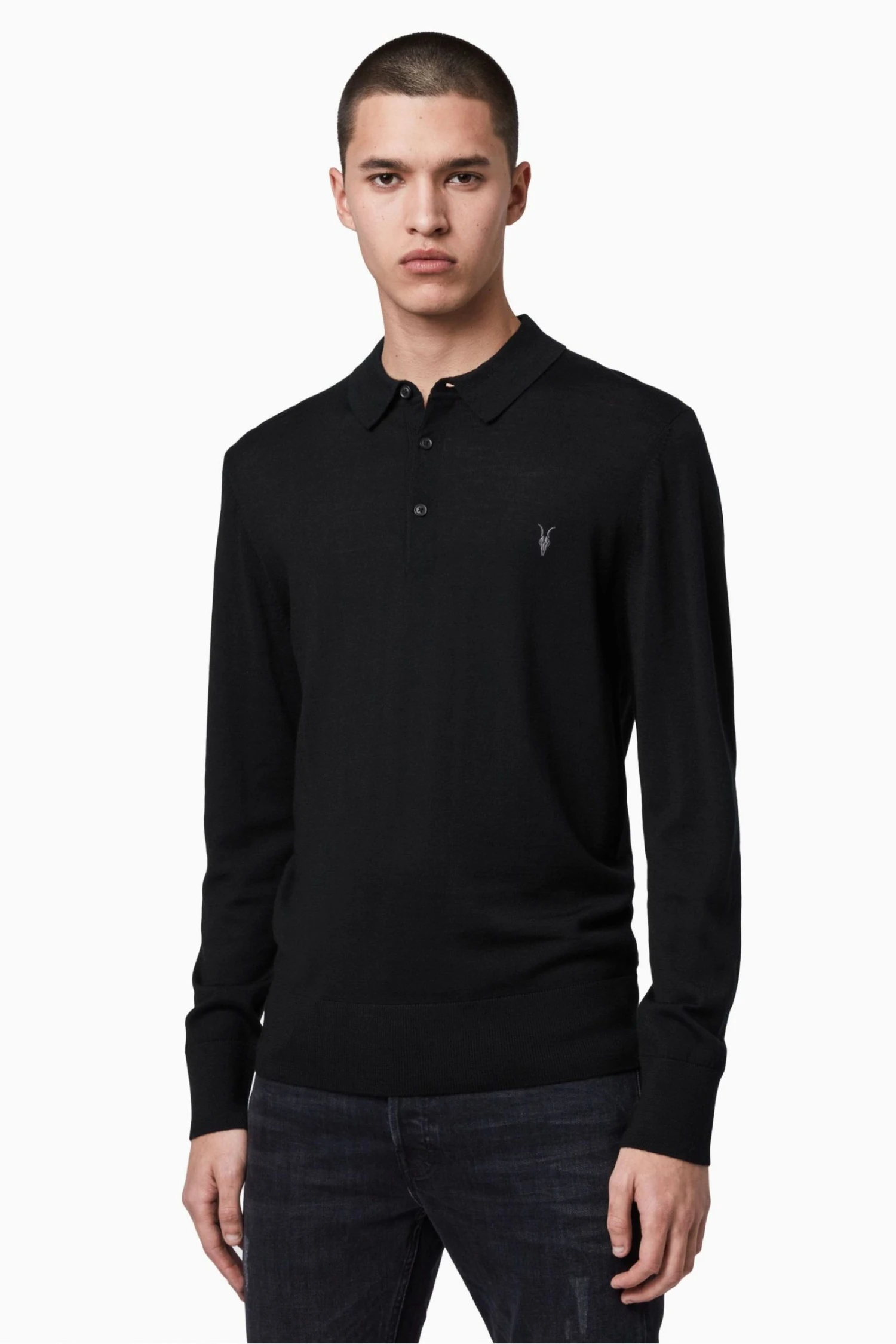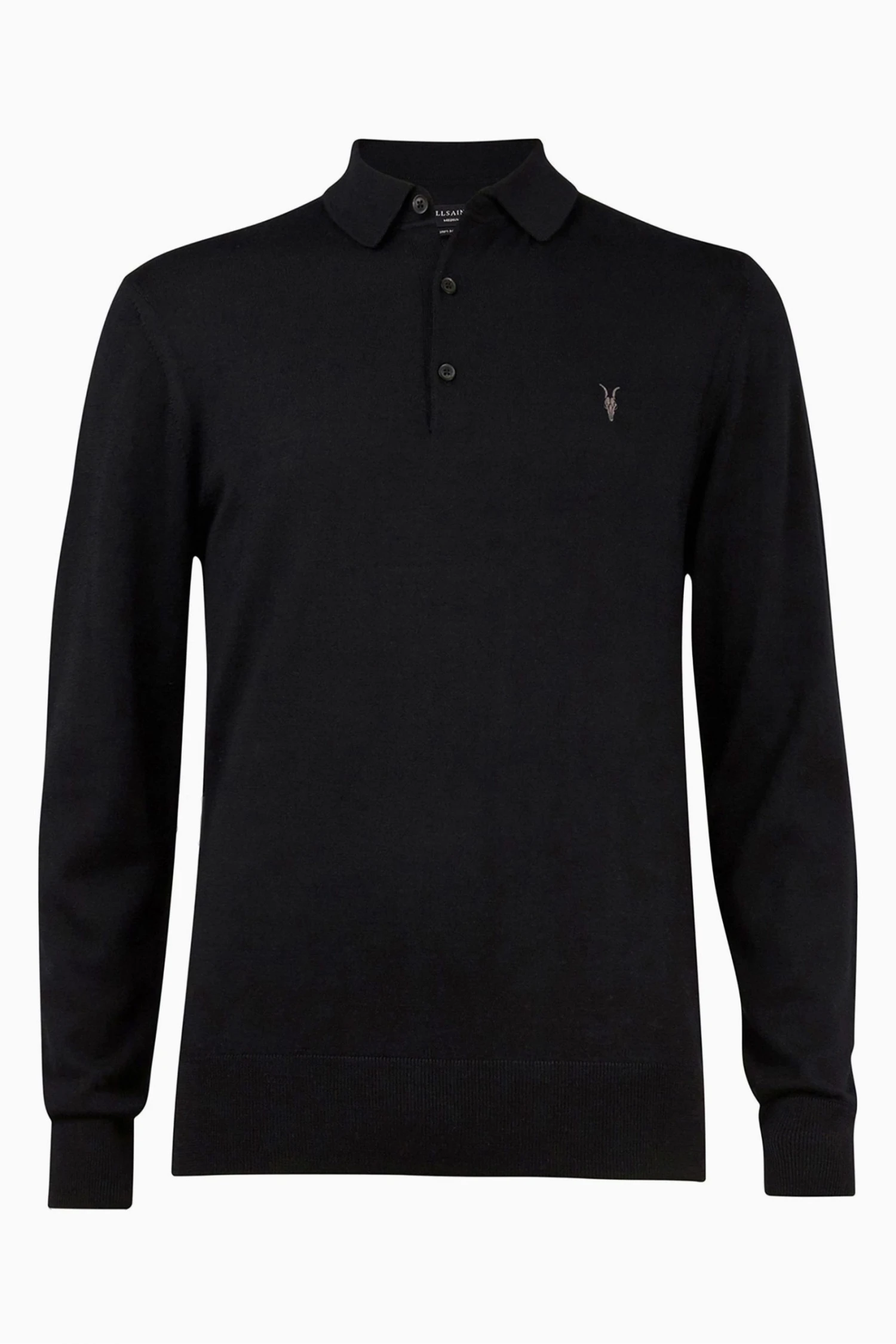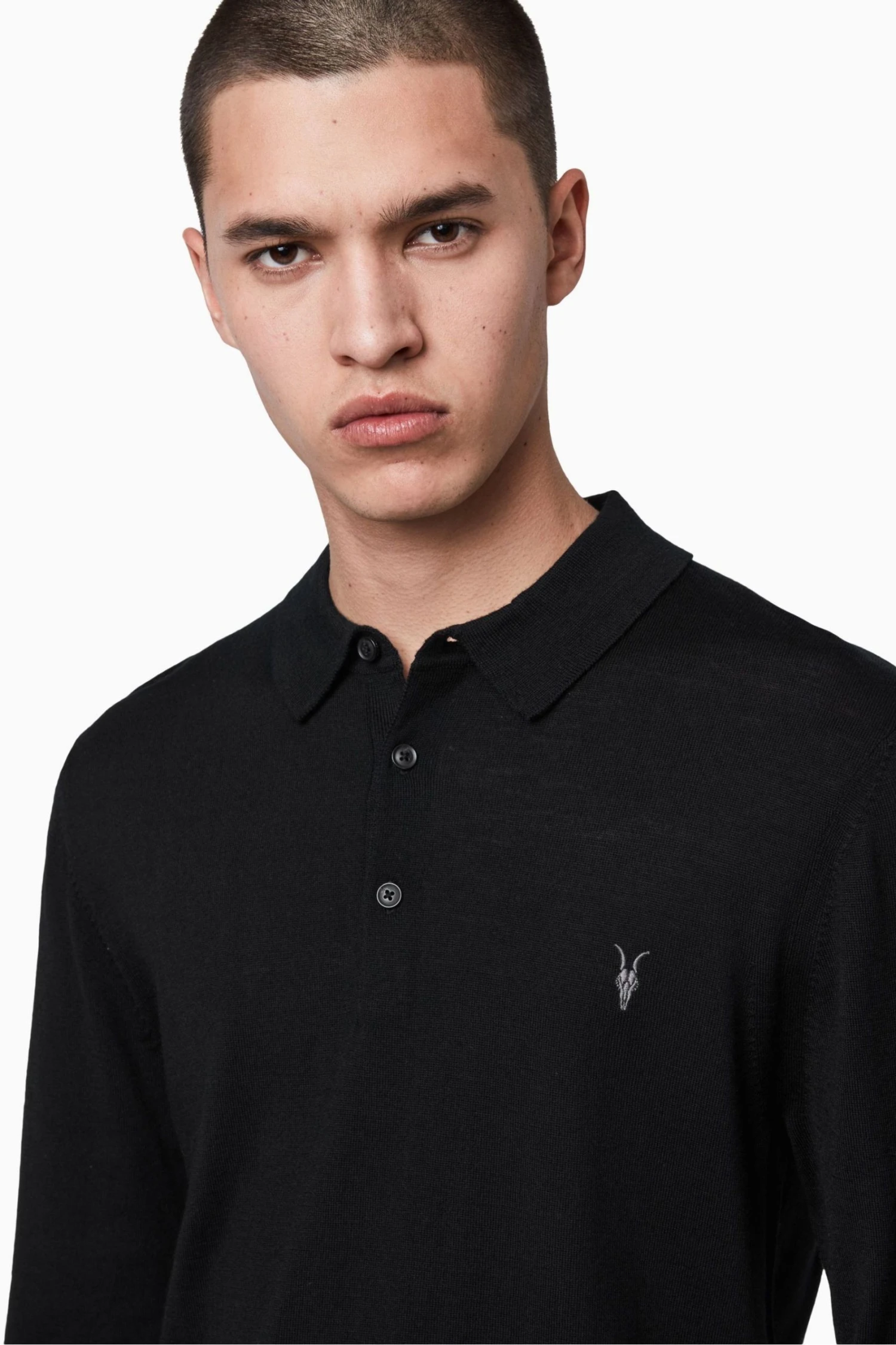 Classic collar. Ribbed trims. Long sleeve. Three button placket. Ramskull embroidery