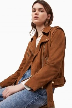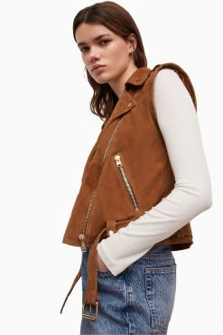 Zip closure. Long sleeves. Collar. 2-In-1. Removable sleeves. Two lower zip pockets. Breast pocket. Ticket pocket. Belt detail. Shiny metal hardware. Chrome free suede. Recycled lining. AllSaints leather products support responsible manufacturing via the Leather Working Group. Regular fit.