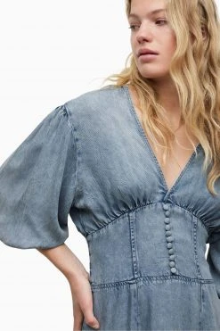 Designed with a V-neck and zip closure, this dress will be a fine addition to your wardrobe.