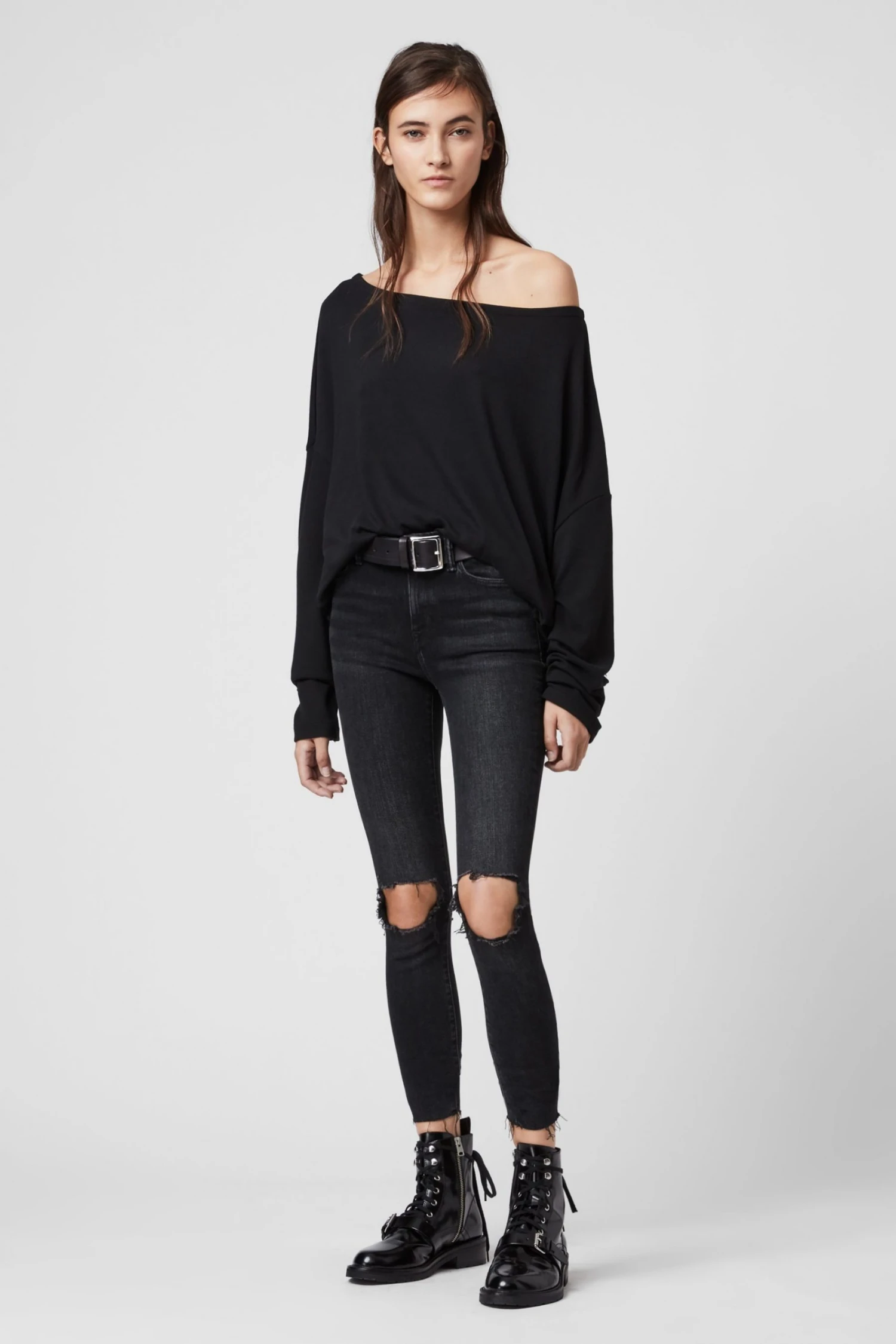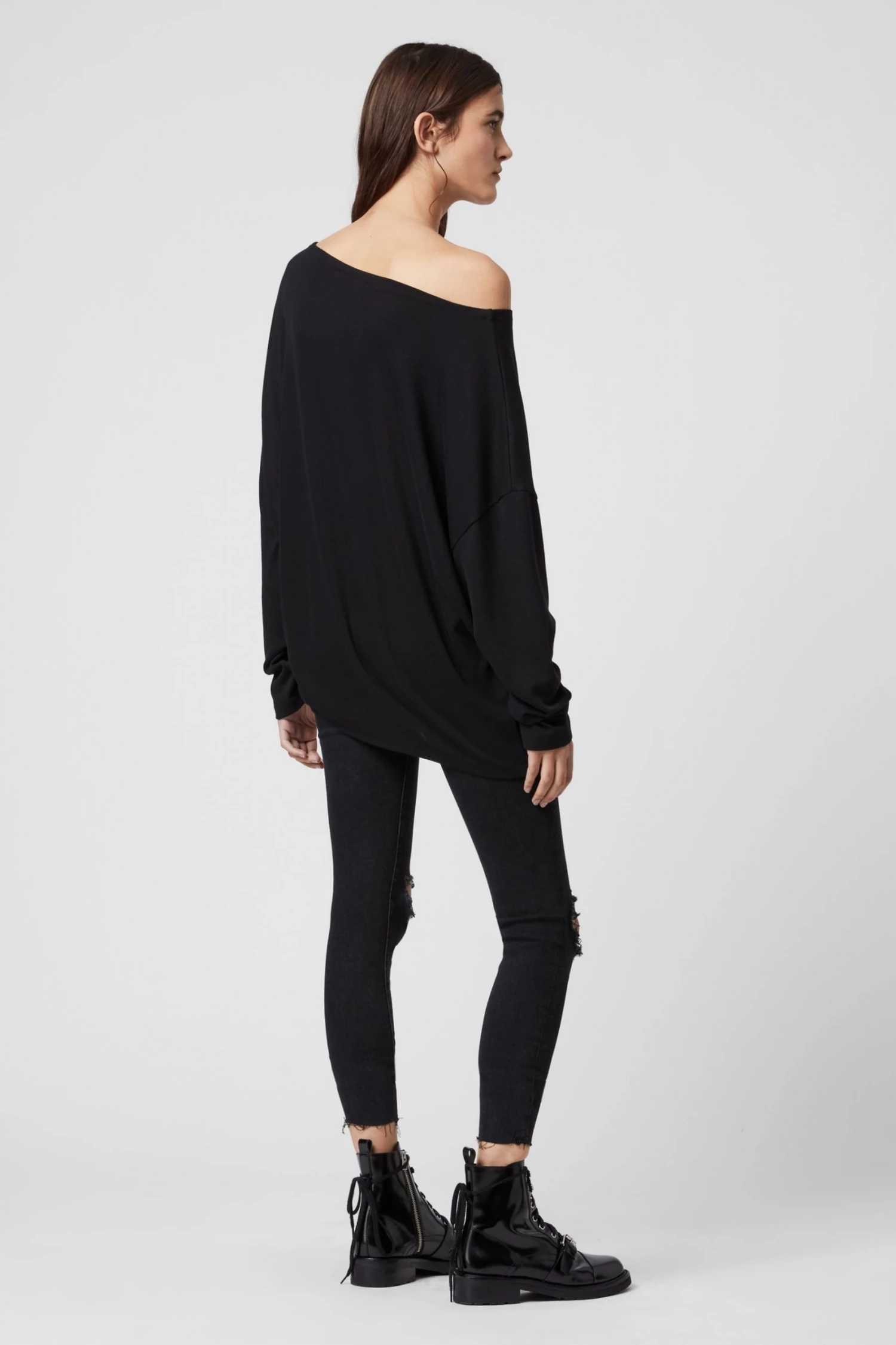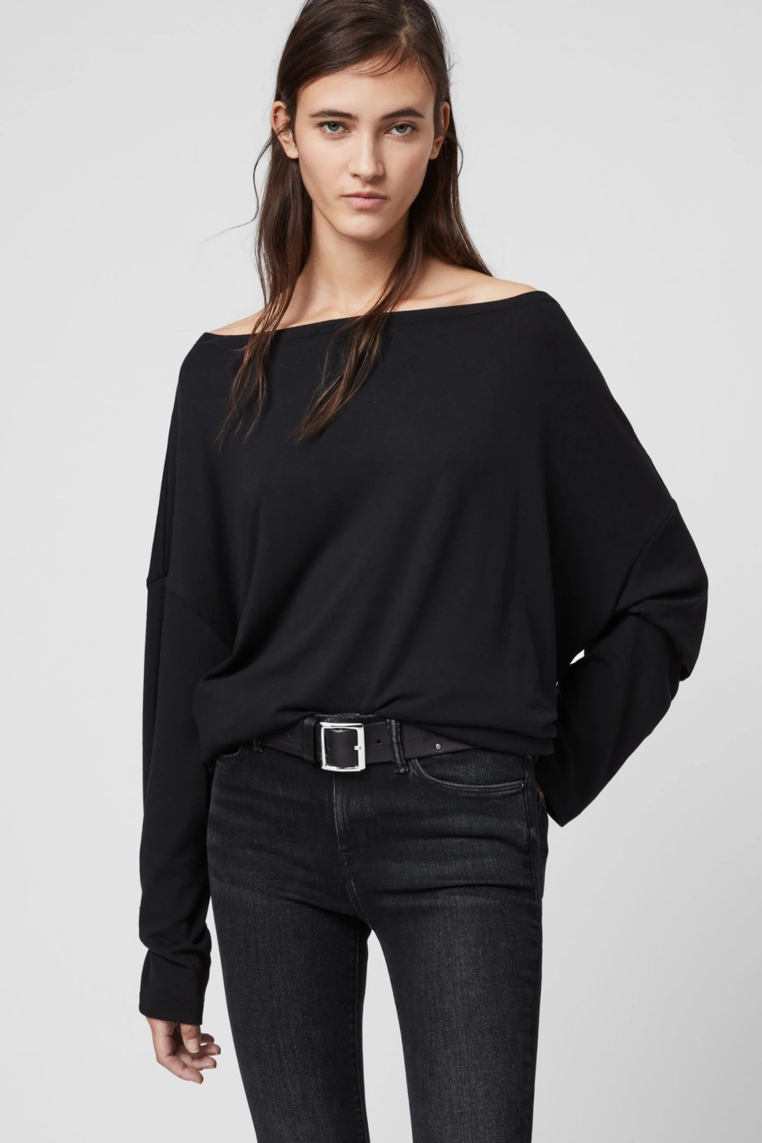 Long sleeve. Slash neck. Oversize fit. Pull over