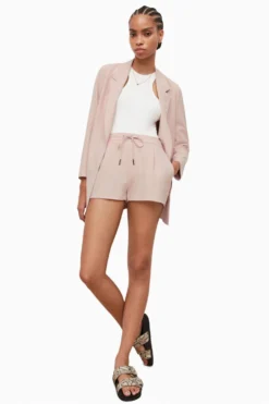 Pull over. Regular fit. Short length. Drawcord waistband. side pockets. pleat at waist and back welt pockets. Mid rise. Straight leg. Unlined