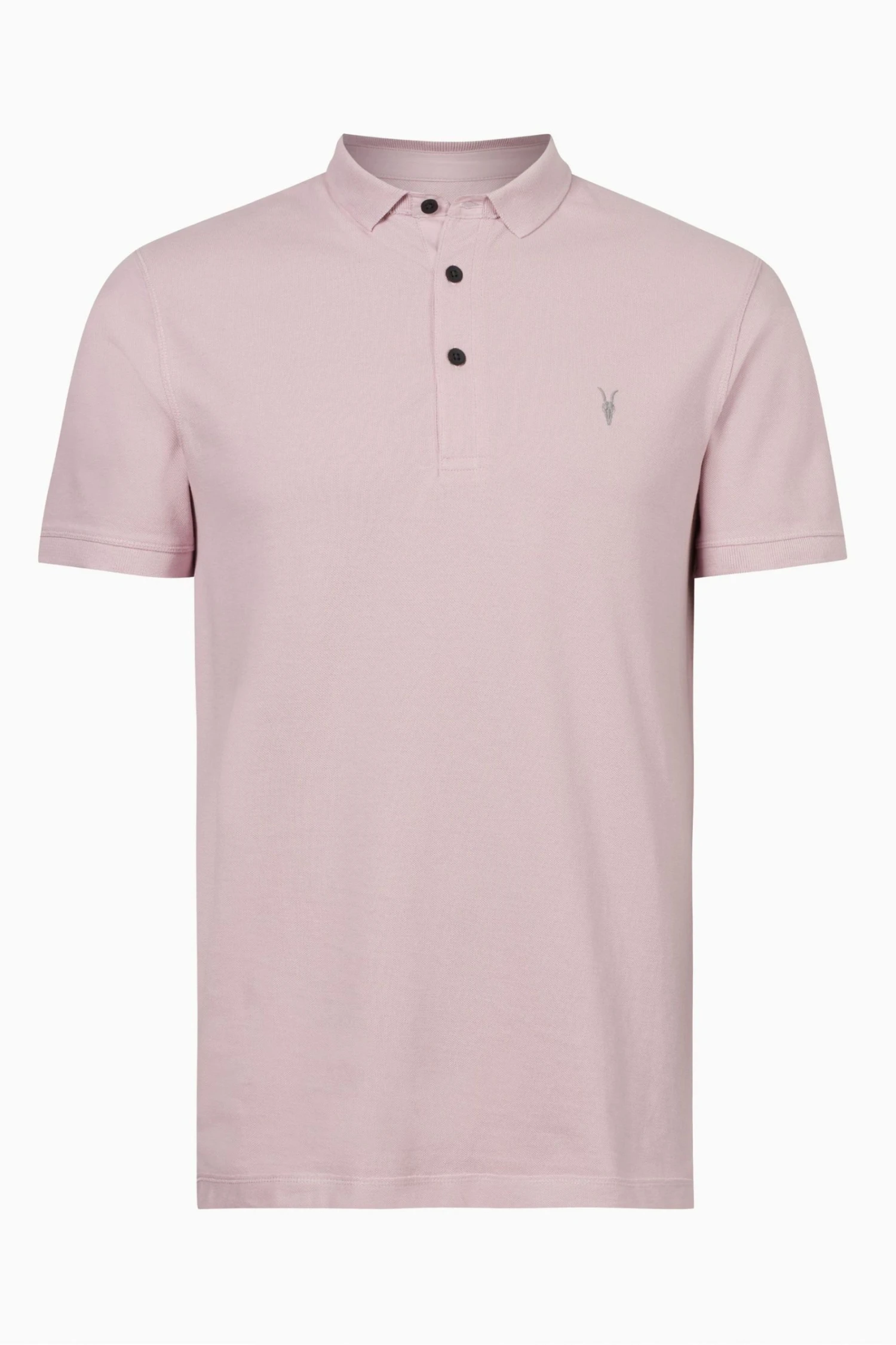 Button closure. Slim fit. Polo collar. Short sleeve. Ramskull Embroidery on left front chest. Classic polo collar. Ribbed cuffs and collar. Three button placket.