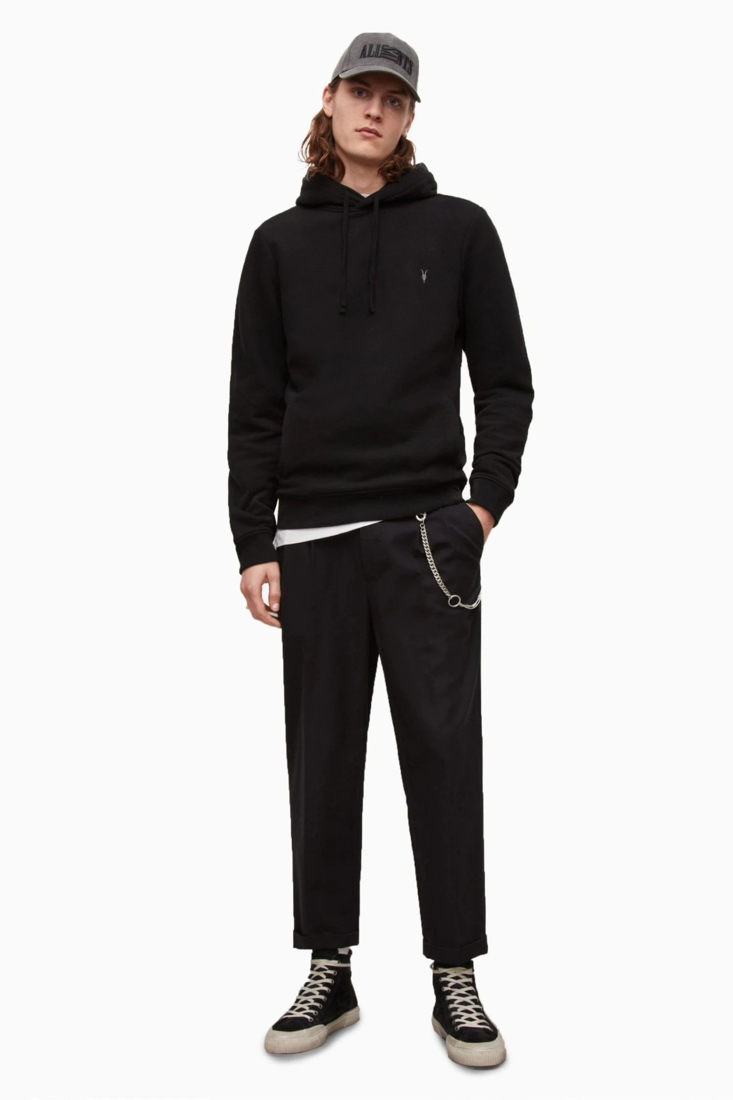 Loungewear. Kangaroo pocket. Drawstring hood. Long sleeve. Ramskull embroidery. Carbon brushed cotton fleece.
