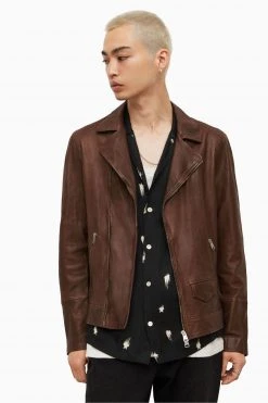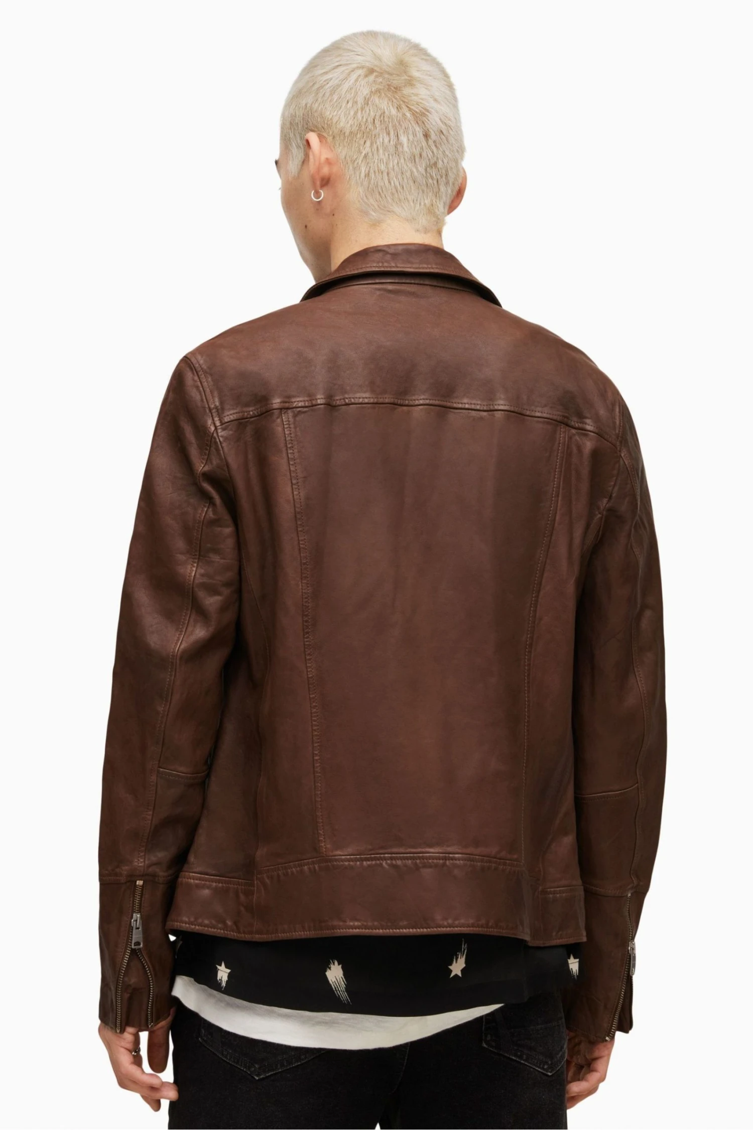 Features a zip closure, collar, lapel and long sleeves.