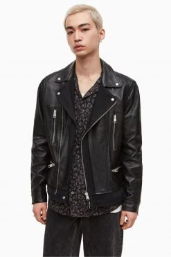Patchwork biker with a mix of leather and denim, with the lapel, CF panel strip and hem being denim. Featuring classic symmetrical pocket details.