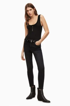 Introducing the Miller. Crafted from power stretch denim with a soft handfeel, they’re designed to stay soft over time. Shaped to a mid-rise silhouette and constructed with an added push up effect. These jeans are sure to flatter. Full length. Mid-rise. Zip closure. Vegan leather washer. Five pockets. Reinforced pockets. Rope in the belt loops. Superstretch. Model is 5’11″/180.5cm and is wearing size 27. ALLSAINTS cotton products support more sustainable cotton farming. Better Cotton is sourced via a system of Mass Balance.