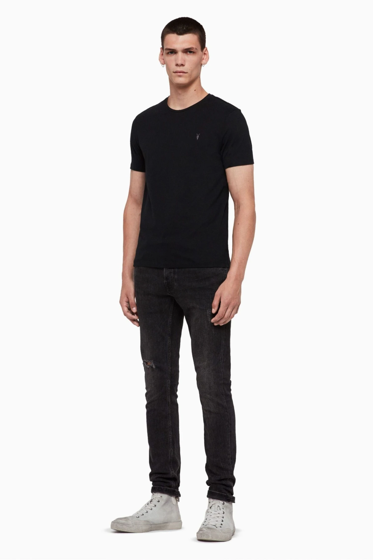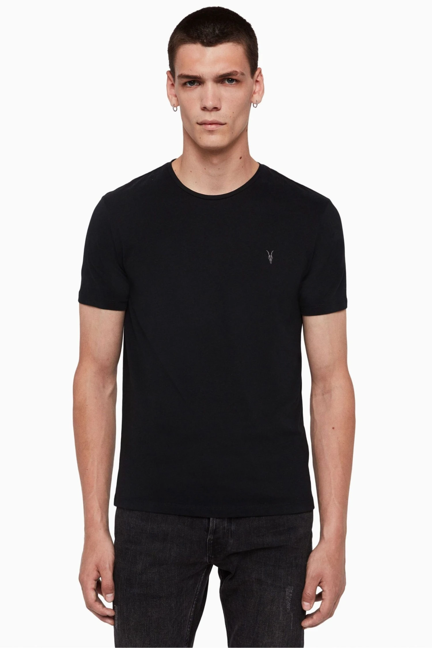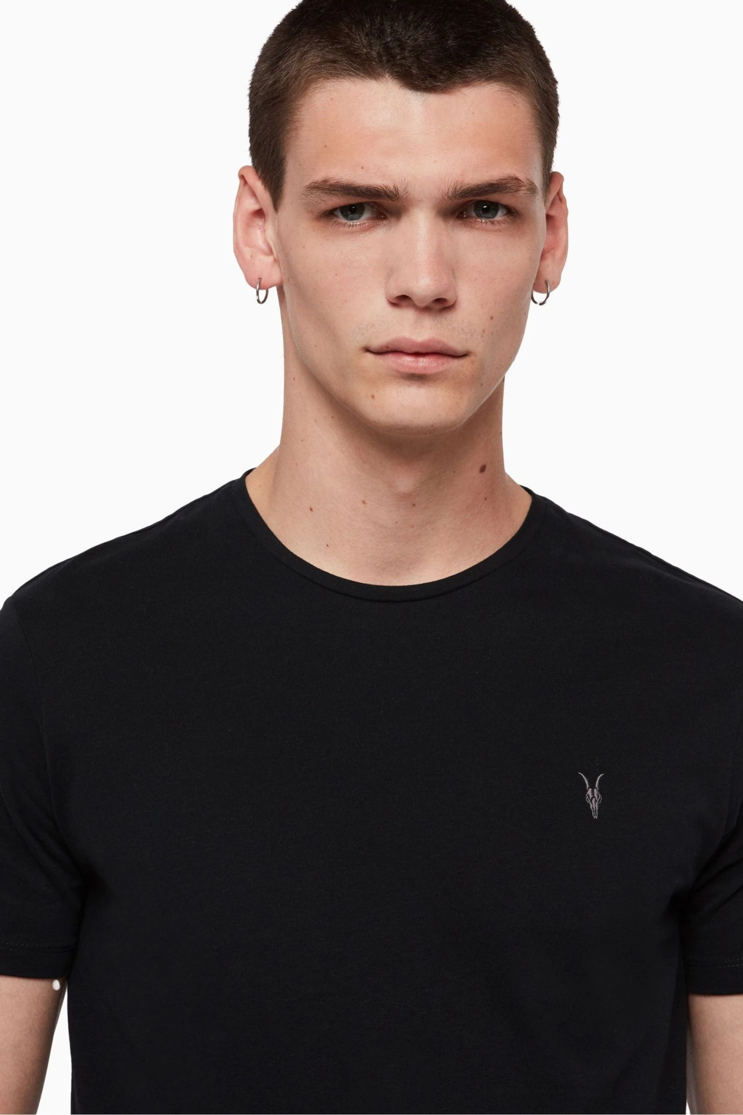 Features include: Pullover. Crew neck. Short sleeve. Carbon brushed cotton. Ramskull embroidery.