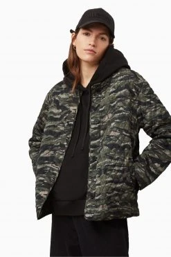 The Hallie Liner Jacket is a welcomed update on classic camo. Featuring our new-season Oniyuri print – it’s hand-painted. Made from sustainable fabrics and cut to a regular silhouette with a diamond quilted texture. Round neck. Button closure. Long sleeves. Two side seam pockets. Diamond quilted. Centre front placket. Lined. New-season Oniyuri print – inspired by Japanese tiger lillies, it’s hand- painted with messages and our store blueprints hidden in the camo. Sustainable EcoVeroâ„¢ viscose. Worn with Talon Hoodie and Juno Cap. Model is 5’10″/178cm and wears size UK 10.