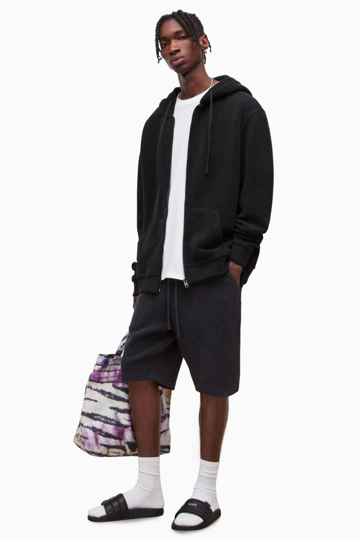 Its a relaxed fit hoodie with zip closure and long sleeves. It has lightweight fleece fabrication with Kangaroo pocket.