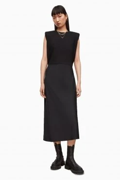 Pull over. Crew neck. Sleeveless. The Tierny Crop Tank Dress, is a 2-in-1 style, with a cropped coni tank layered over the Tierny Slip Dress. No Pockets. Sustainability Attribute: 100% Organic Cotton.